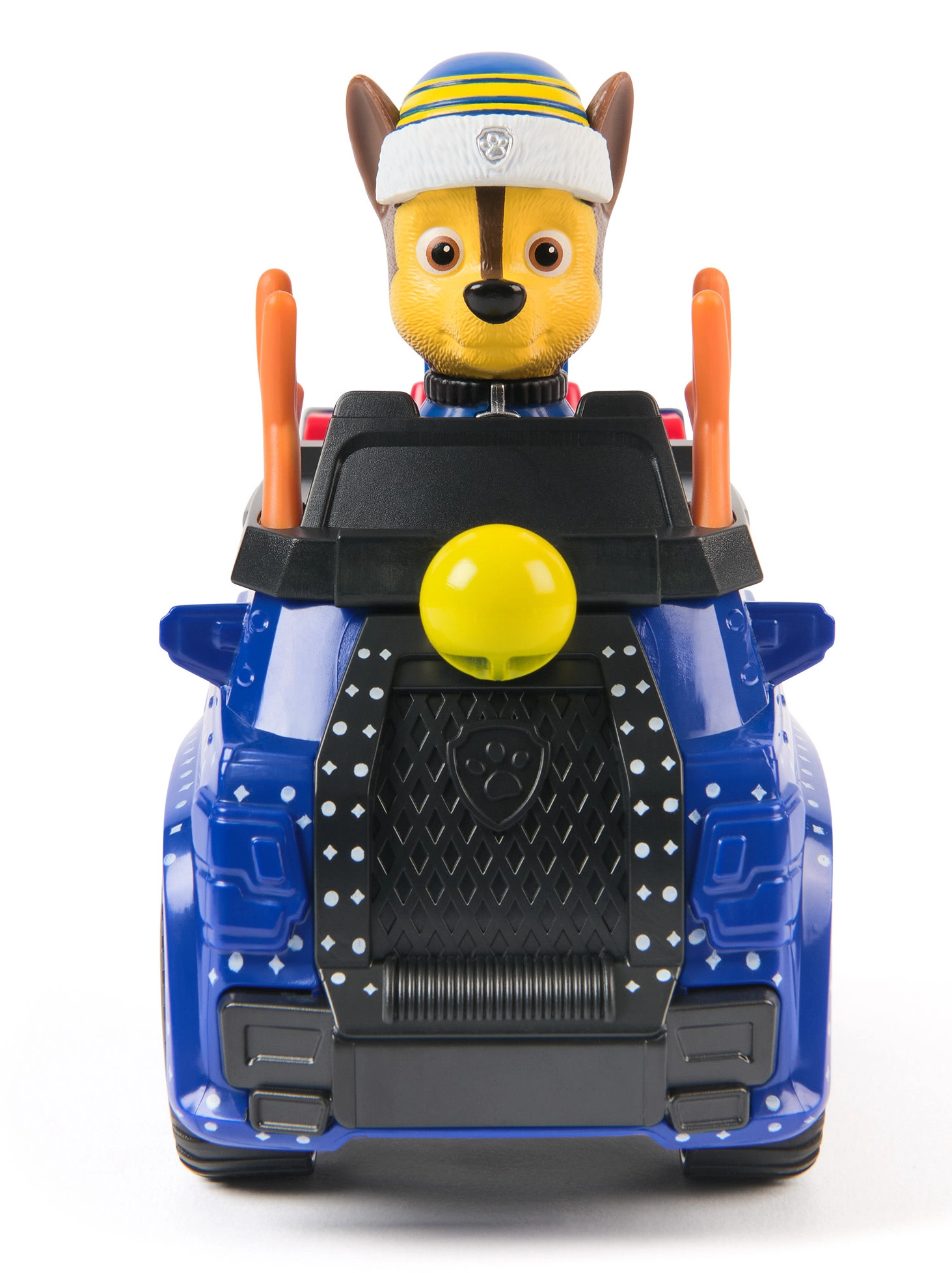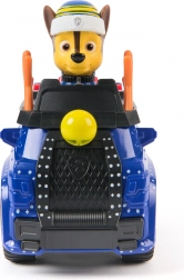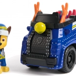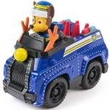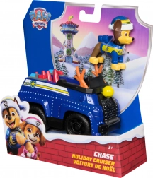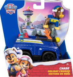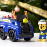 Szczegółowy niebieski pojazd ze świątecznymi akcentami i ruchomymi kołami. Figurka CHASE w zimowej czapce siedzi bezpośrednio w kokpicie i jest gotowa do akcji.