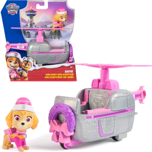 Świąteczny helikopter Skye marki Spin Master przenosi dzieci w autentyczny świat serialu PAW PATROL. Stylowy szaro‑różowy śmigłowiec z wieńcem z przodu ma otwierany kokpit, do którego można posadzić figurkę Skye w zimowej czapce. Dzięki obracającemu się wirnikowi i trzem kółkom dzieci mogą bawić się w lądowanie i „lot” po pokoju.