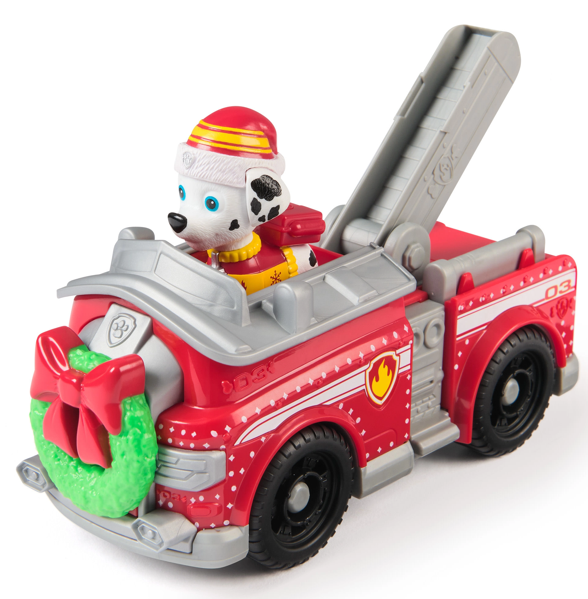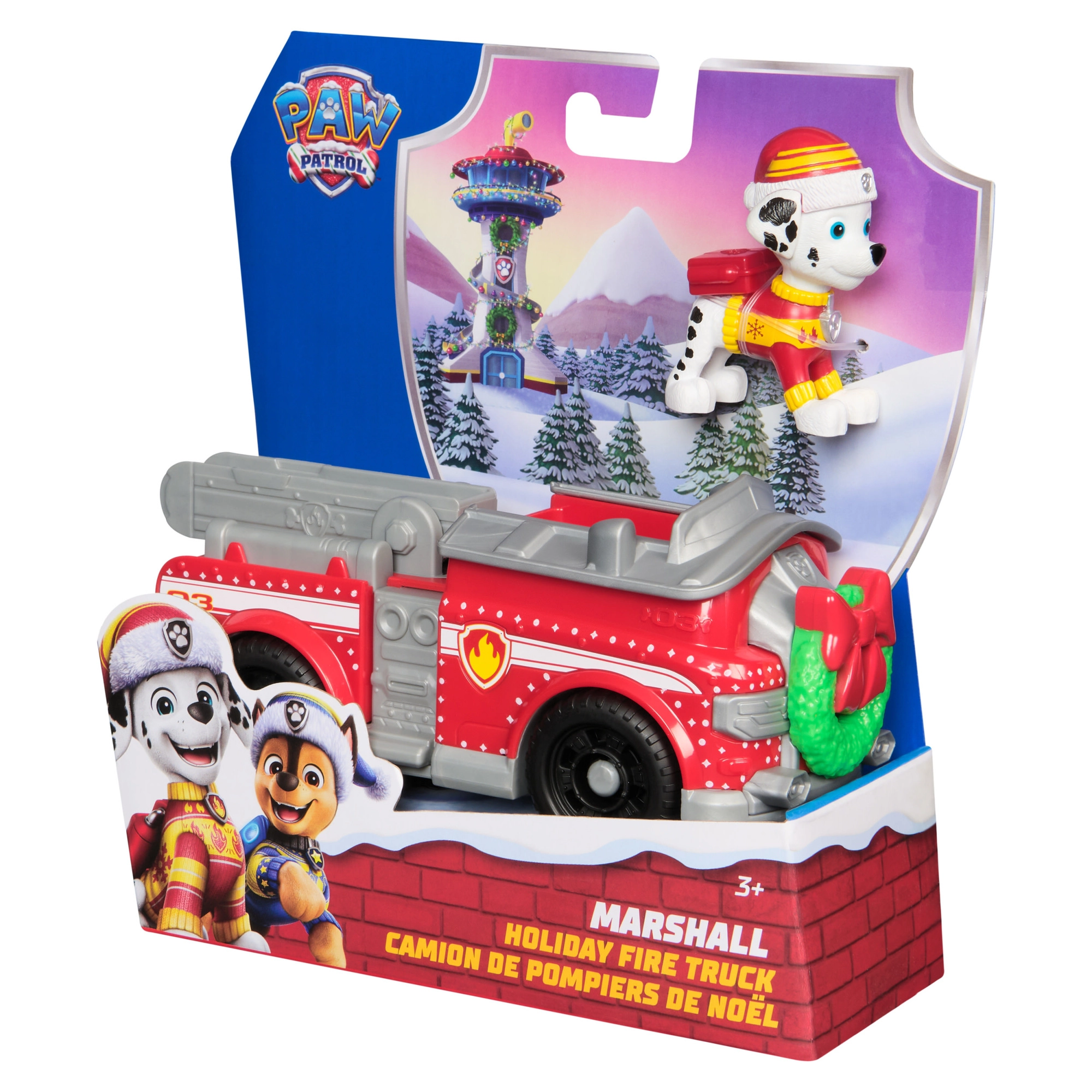 Ten oficjalny zestaw marki Spin Master przybliża ulubionego pieska Marshalla w zimowym stroju oraz stylowy wóz strażacki z wieńcem na przodzie. Dzieci mogą posadzić figurkę w kabinie i wyruszyć na pełne przygód misje. Dzięki rolującym kołom i odchylanej drabinie zabawa jest płynna i pełna akcji.