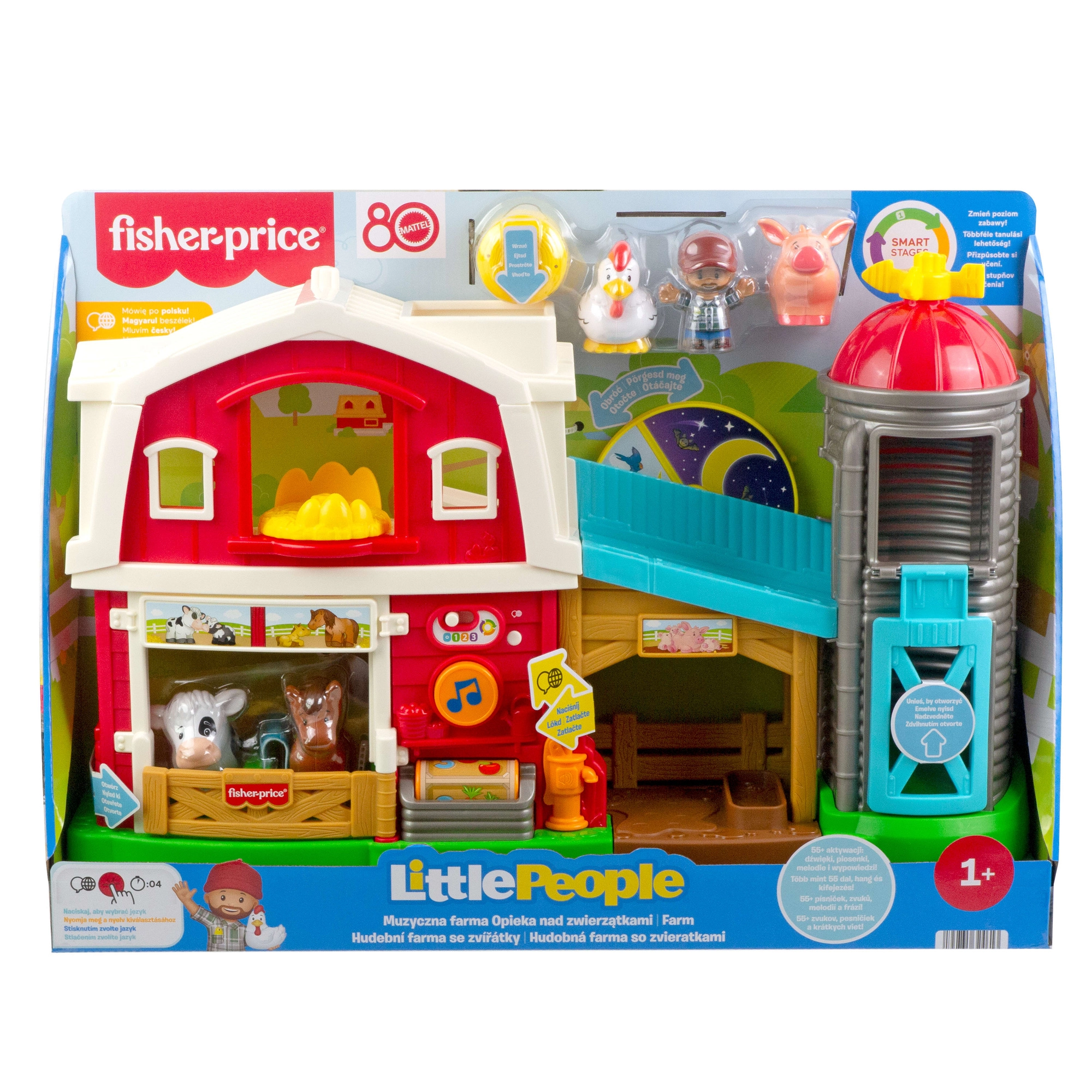 Ta interaktywna farma Little People zamienia zabawę w naukę pełną radości. Dzieci mogą otwierać i zamykać wrota, przełączać dzień/noc, zsuwać belę siana z silosu i układać zwierzątka w ich boksach. Duże elementy sterujące, przycisk z nutką i suwak trybów są idealne dla małych rączek.
