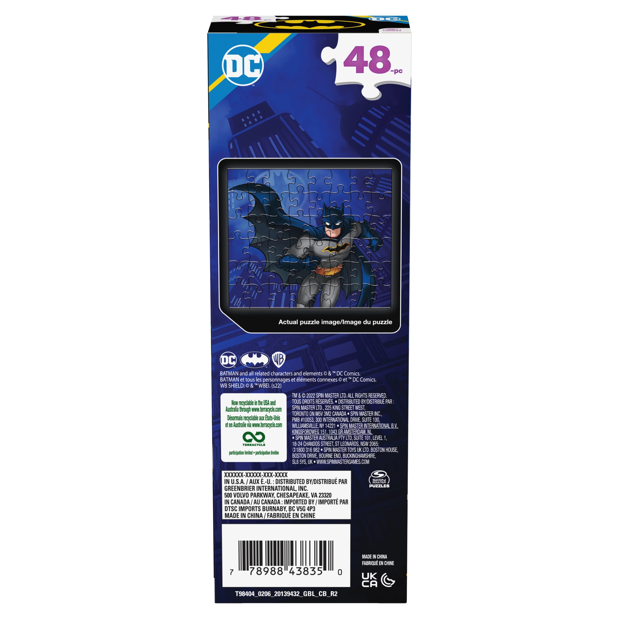 Dziecięce puzzle z motywem BATMAN marki Spin Master oferują 48 elementów, a po ułożeniu tworzą obrazek 26,2 × 23,1 cm. Świetna zabawa rozwijająca koncentrację, cierpliwość i logiczne myślenie – idealne jako oryginalny prezent dla małych fanów świata DC Comics.