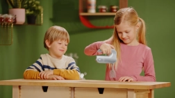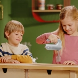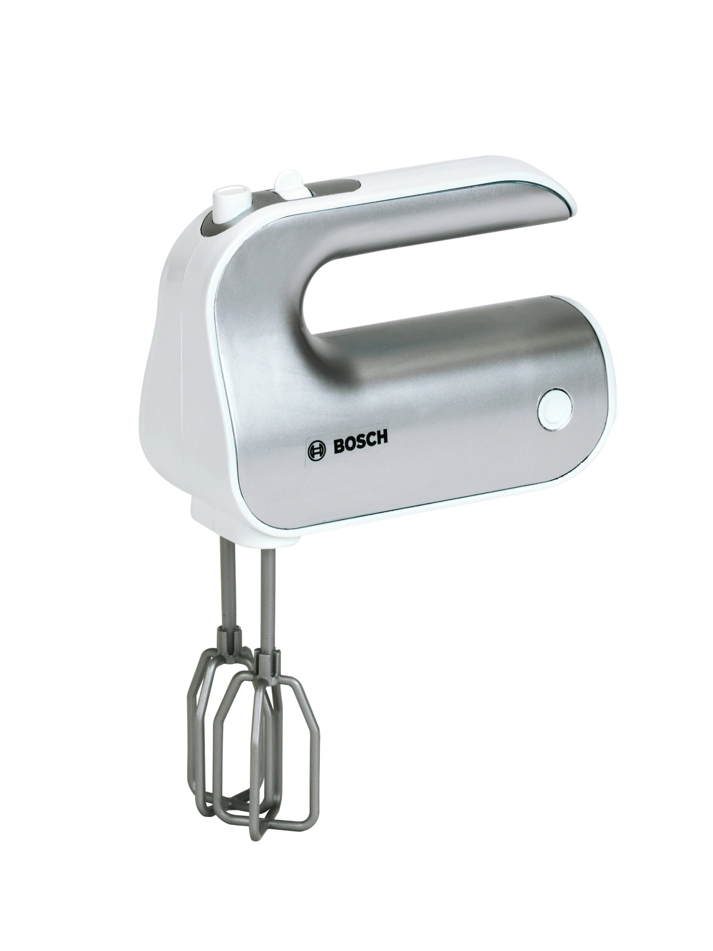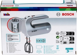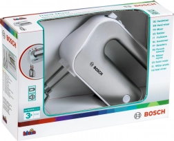 Podaruj dzieciom zabawę jak w prawdziwej kuchni. Licencjonowany mikser BOSCH w srebrnym kolorze wiernie naśladuje prawdziwe urządzenie: po naciśnięciu przycisku trzepaczki się obracają, a przesuwny przełącznik imituje ustawienie prędkości. Dzięki odłączanym końcówkom dzieci nauczą się też nawyków dbania o porządek.