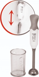 Ten wierny model ręcznego blendera z licencjonowanej serii BOSCH Mini wykonano z wysokiej jakości, bezpiecznego plastiku w stylowym srebrnym kolorze. Dzięki obracającej się końcówce po naciśnięciu przycisku oraz odłączanej końcówce miksującej zabawa przypomina prawdziwe gotowanie, a dzieci mogą „miksować” koktajle, zupy i sosy jak w prawdziwej kuchni.