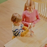 W zestawie znajduje się przezroczysta miarka z podziałką (250 ml), która wspiera naukę podstawowych czynności kuchennych i rozwój motoryki małej. Zabawka zaprojektowana jest dla dzieci od 3 lat, wielkością i kształtem idealnie pasuje do małych rączek i świetnie uzupełnia inne urządzenia z dziecięcej serii BOSCH.