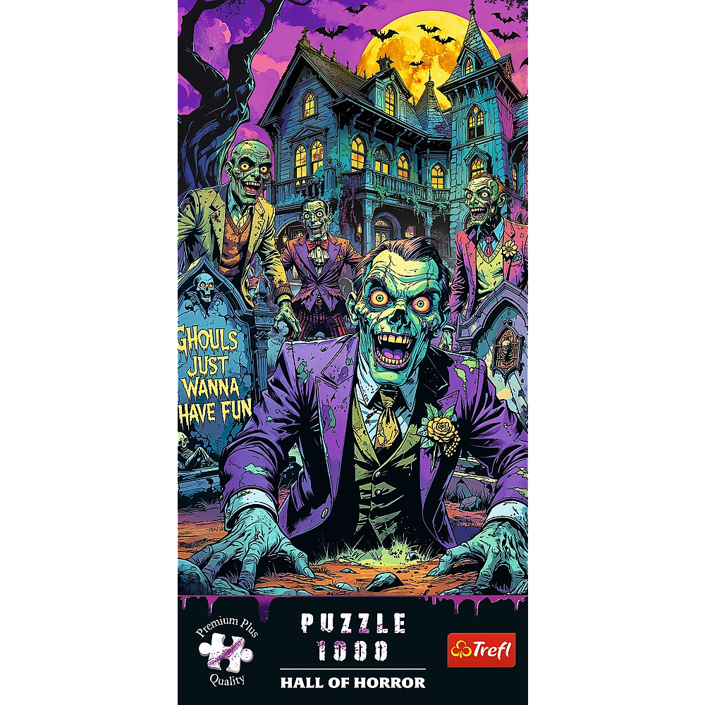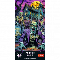 Ułóż pełną napięcia scenę z zombie z kolekcji Hall of Horror marki TREFL. Wysokiej jakości puzzle 1000 elementów z ekstra mocnej tektury, z precyzyjnym wycinaniem i certyfikatem FSC. Gotowy obraz ma wymiary 68,3 × 48 cm i ucieszy wszystkich miłośników horroru oraz wymagających układaczy.