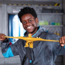 Detale z skrzydłami i muskularnymi kształtami pobudzają wyobraźnię i sprzyjają dynamicznym przygodom.