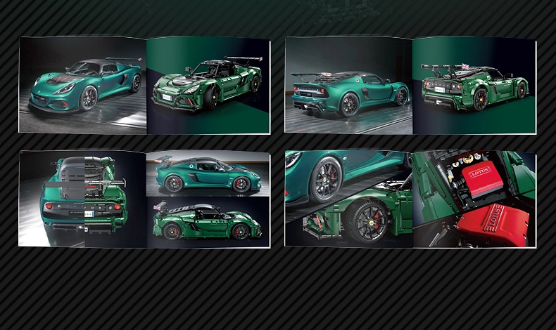 Ten wielkoformatowy model samochodu sportowego zapewnia wciągające doświadczenie konstrukcyjne i imponujący efekt na półce. Dzięki szczegółowym funkcjom mechanicznym – od otwieranych paneli, przez funkcjonalne kierowanie, po zawieszenie – cieszy nie tylko podczas budowy, ale i interaktywnej prezentacji gotowego modelu. Realistyczne proporcje i ciemnozielone aerodynamiczne kształty wiernie nawiązują do pierwowzoru LOTUS Exige Cup 430.