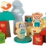 W zestawie znajdują się urocze figurki zwierząt – tygrys, panda, małpka, ptaszek i inne – które inspirują do opowiadania historii i swobodnej zabawy.