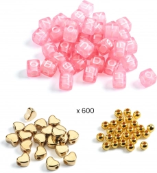 Elegancki zestaw kreatywny z koralikami z literami do tworzenia osobistych bransoletek i naszyjników. Dzieci z łatwością ułożą imiona lub wiadomości i stworzą oryginalną biżuterię w złotej odsłonie. Świetny wybór na rozwój motoryki małej, kreatywności oraz jako prezent dla małych twórców.