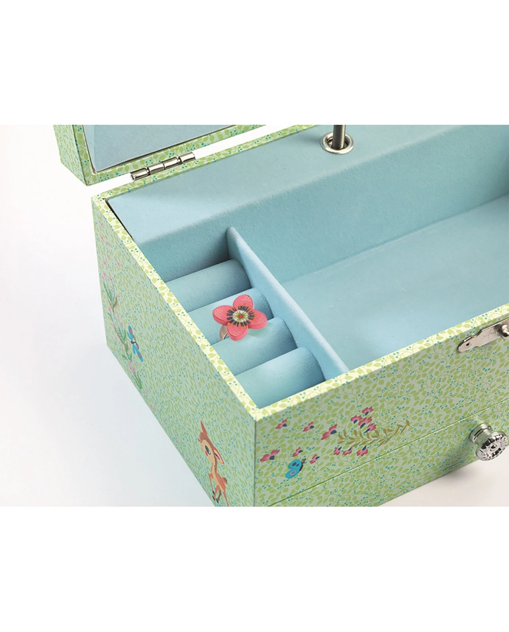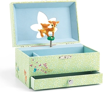 Urocza pozytywka z motywem jelonka marki DJECO bezpiecznie i stylowo przechowa wszystkie dziecięce skarby. Po otwarciu ukazuje się figurka jelonka i rozbrzmiewa delikatna melodia, tworząc magiczną atmosferę. Idealny prezent dla dzieci, które kochają piękne detale i lubią własne tajemne skrytki. Piękny design, delikatna melodia i praktyczne przegródki na drobiazgi.