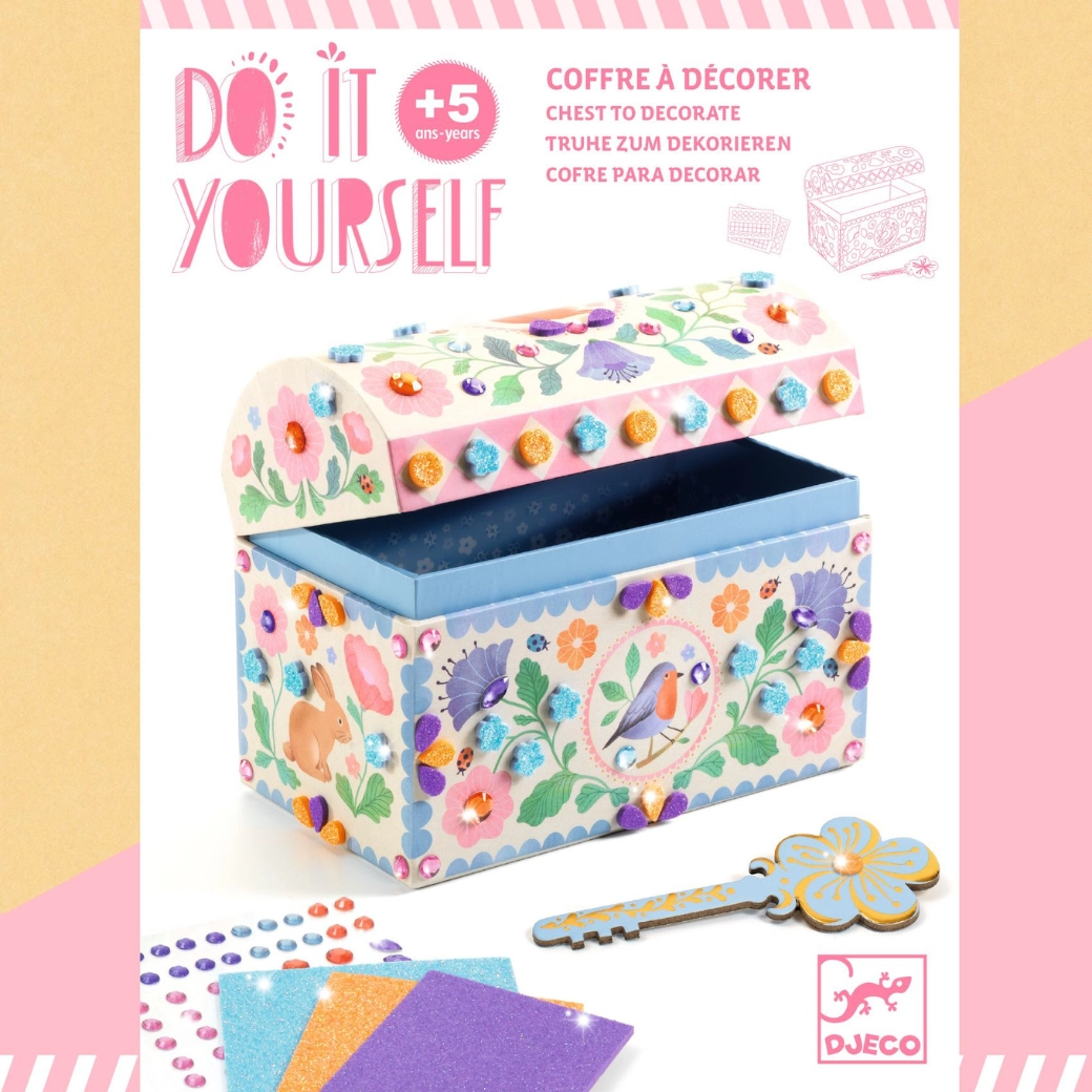 Stwórz własną skrzynię z tajnym dnem i ukryj swoje skarby ze stylem! Ten kreatywny zestaw marki Djeco wspiera motorykę małą, kreatywność i wyobraźnię dzieci. Prosty sposób wykonania, wysokiej jakości materiały i piękny efekt, z którego dzieci będą dumne.