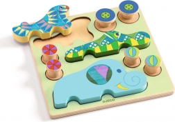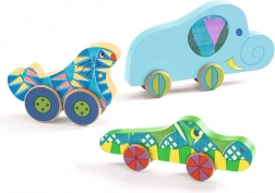 Urocza drewniana układanka wtykana dla najmłodszych, która po ułożeniu naprawdę „rusza”! Dzieci świetnie się bawią motywem zwierzątek w autkach, a jednocześnie rozwijają małą motorykę, myślenie logiczne i koordynację oko–ręka. Wysoka jakość marki Djeco oraz bezpieczne materiały gwarantują długą żywotność i radość z zabawy.