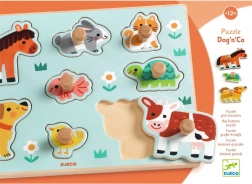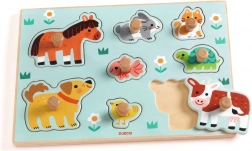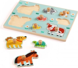 Drewniana układanka wpuszczana DJECO z motywem farmy to idealne pierwsze puzzle dla najmłodszych. Dzieci uczą się rozpoznawać kształty poszczególnych elementów, zwierzęta i ich charakterystyczne kontury, a jednocześnie rozwijają koordynację ręka–oko i cierpliwość.