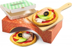 - Tekstylne składniki do pizzy, drewniana łopatka, karta menu, tematyczne pudełka