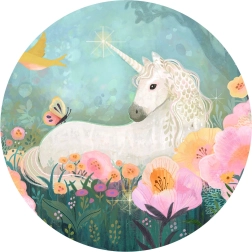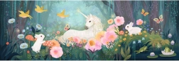 - Magiczny motyw: bajkowy las i jednorożce w bogatych kolorach.