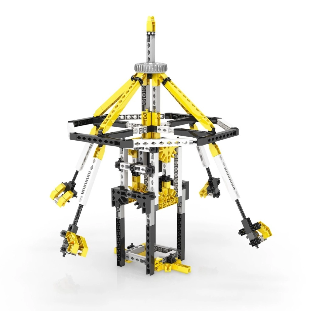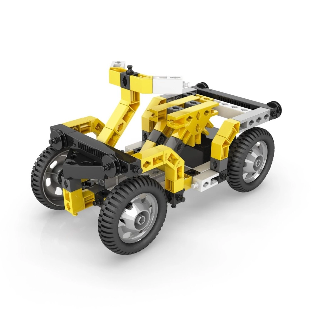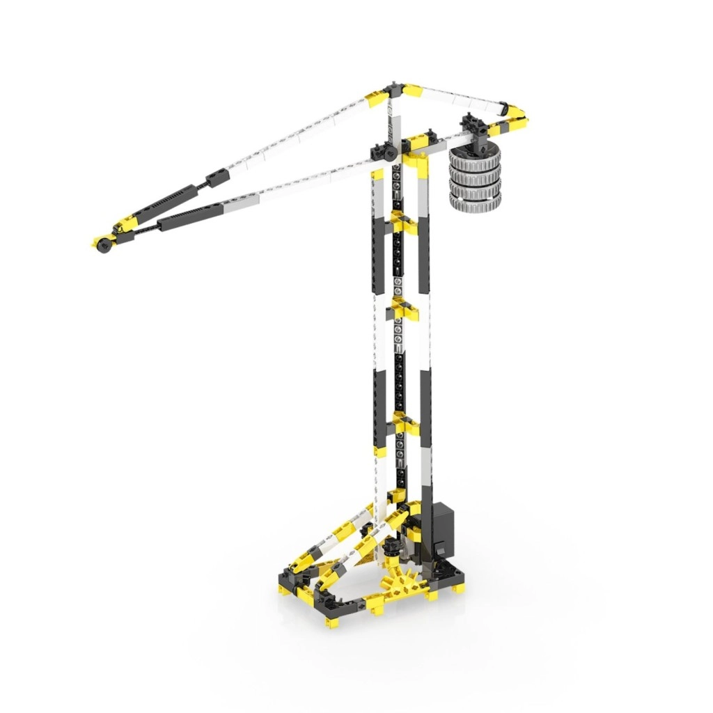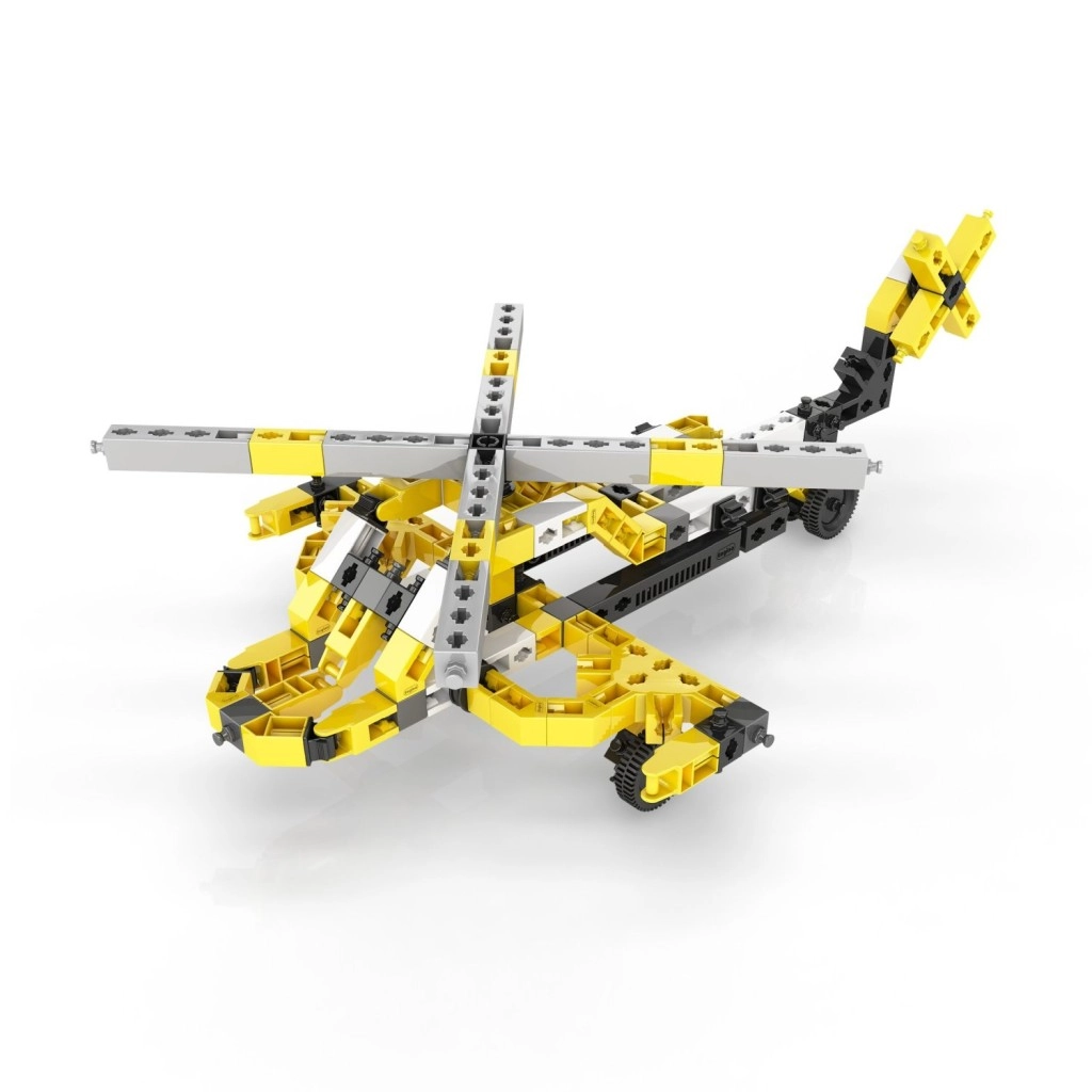 Ta uniwersalna konstrukcja łączy zabawę i edukację. Z jednego zestawu elementów zbudujesz samochody, helikoptery, dźwigi, maszyny i mechanizmy. Zintegrowany silnik na 2× baterie AAA (brak w zestawie) dodaje modelom ruchu i uczy dzieci podstaw mechaniki.