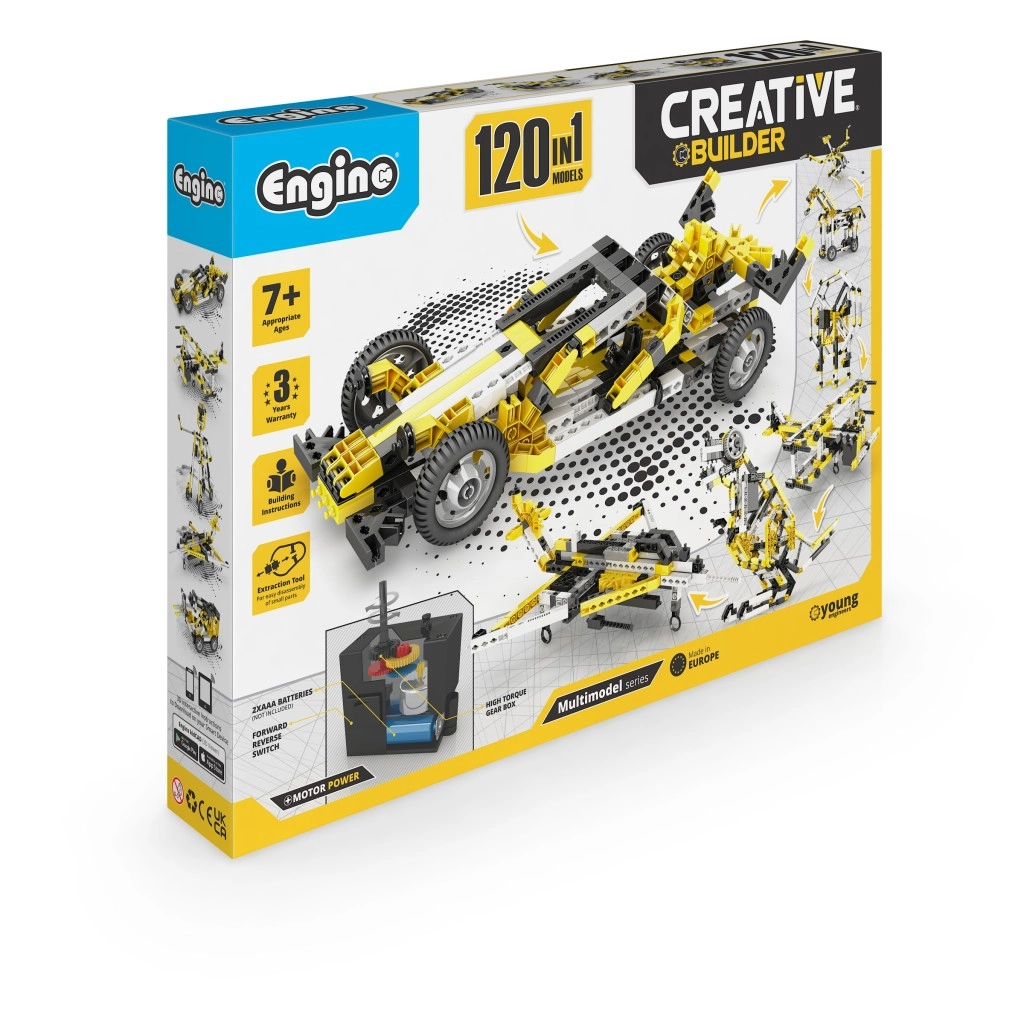 Odkryj nieograniczone możliwości z kreatywną konstrukcją Engino Creative Builder, która pozwala zbudować aż 120 modeli w 1. Dzięki silniczkowi z przełącznikiem kierunku, instrukcjom 3D w aplikacji kidCAD oraz kompatybilności z innymi zestawami ENGINO rozwija logiczne myślenie, kreatywność i umiejętności techniczne dzieci od 7 lat.