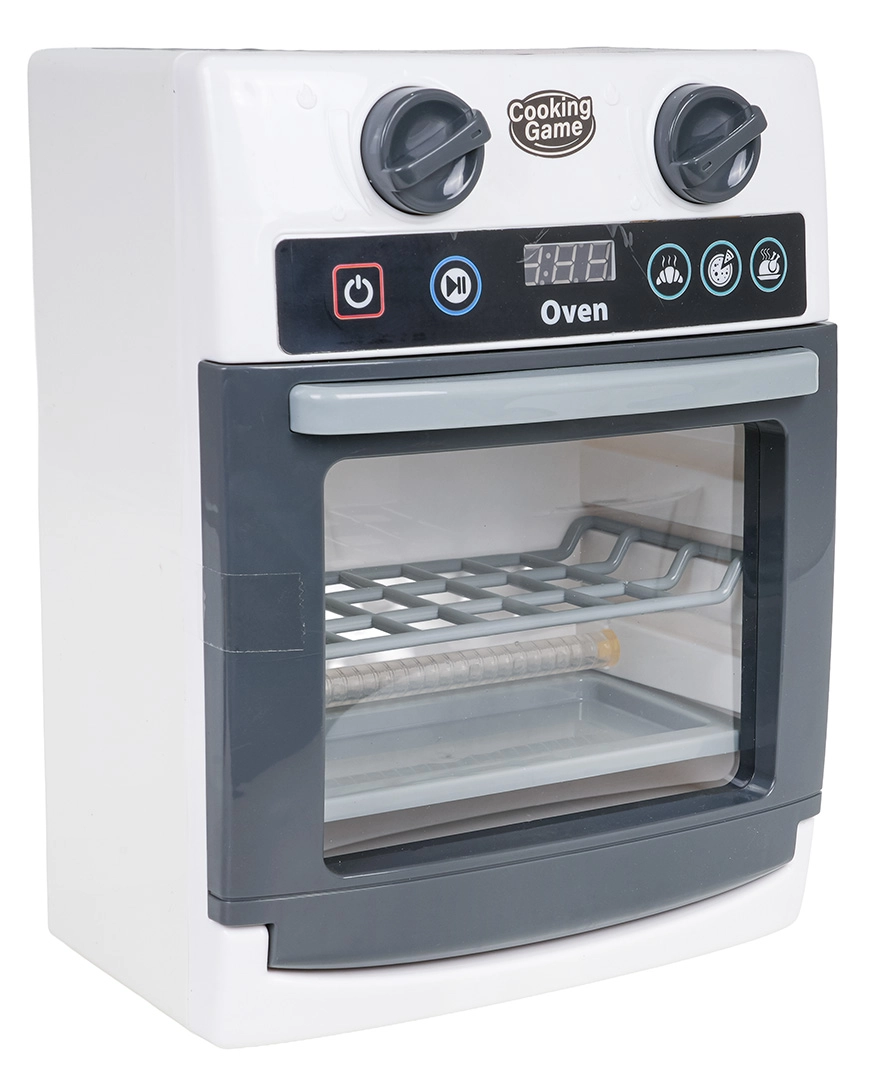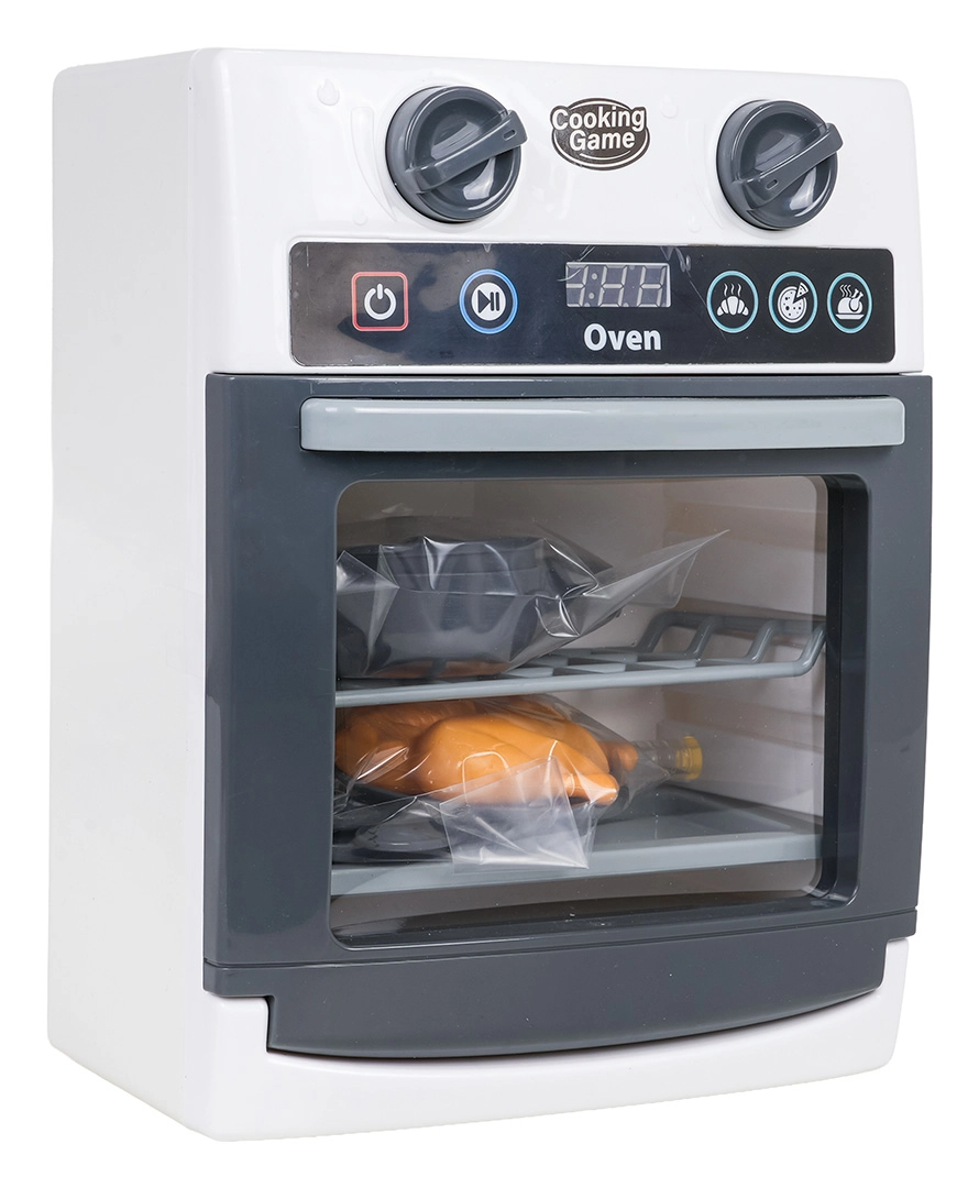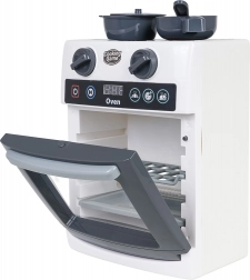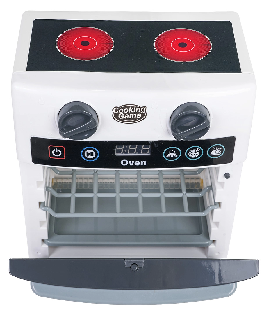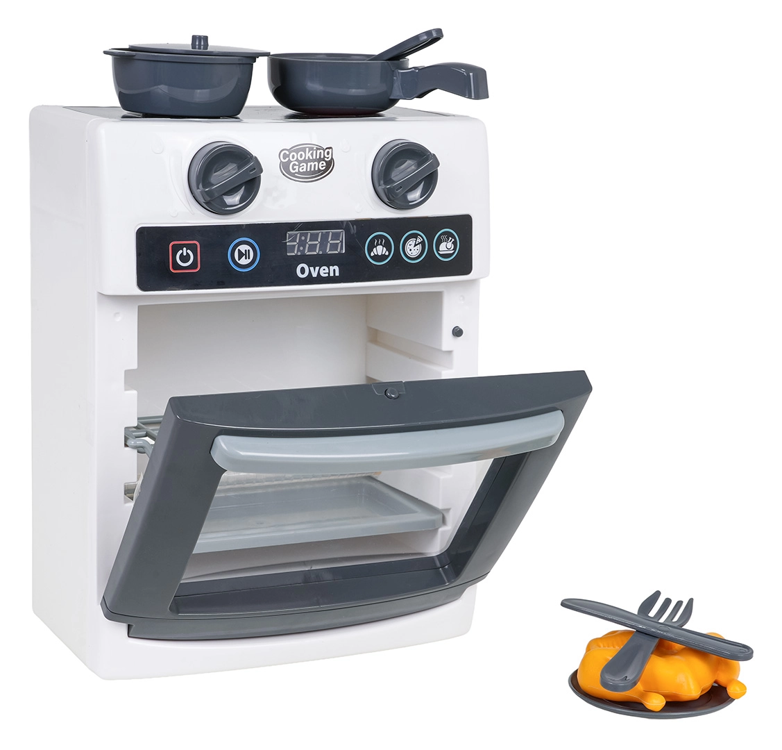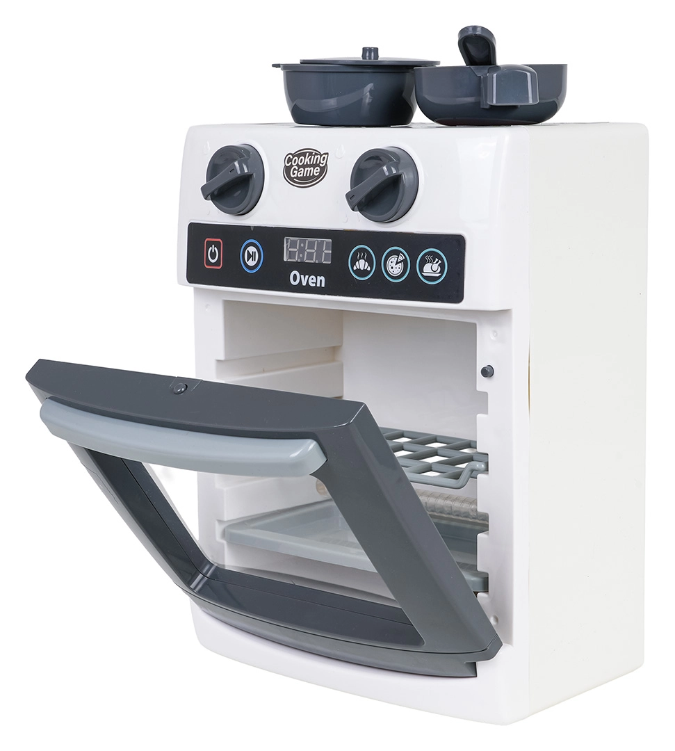 Ten dziecięcy piekarnik wiernie naśladuje prawdziwe urządzenie – ma przezroczyste drzwiczki, ruchome pokrętła oraz panel z timerem. Podczas pieczenia wnętrze się podświetla, a do tego słychać realistyczne dźwięki otwierania/zamykania drzwiczek, pieczenia i zakończenia programu. Zabawa w kucharza zyskuje nowy wymiar kreatywności i fantazji.