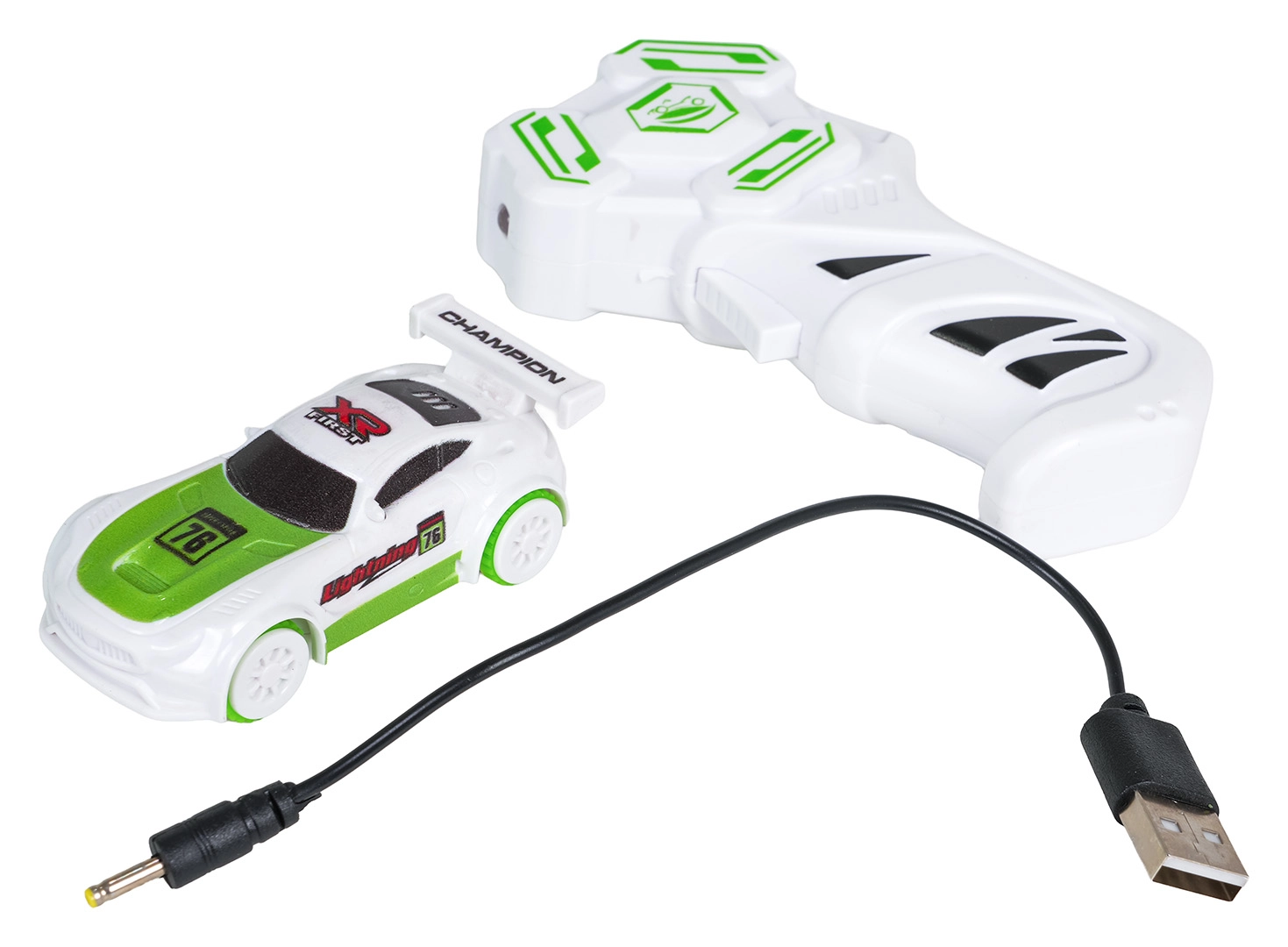 Autko jest zasilane wbudowanym akumulatorem 3,7 V i ładowane dołączonym kablem USB. Pilot działa na 2× AAA (brak w zestawie). Jazda po torze wspiera koncentrację i koordynację oko–ręka, a sama budowa rozwija kreatywność i logiczne myślenie.