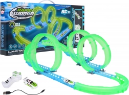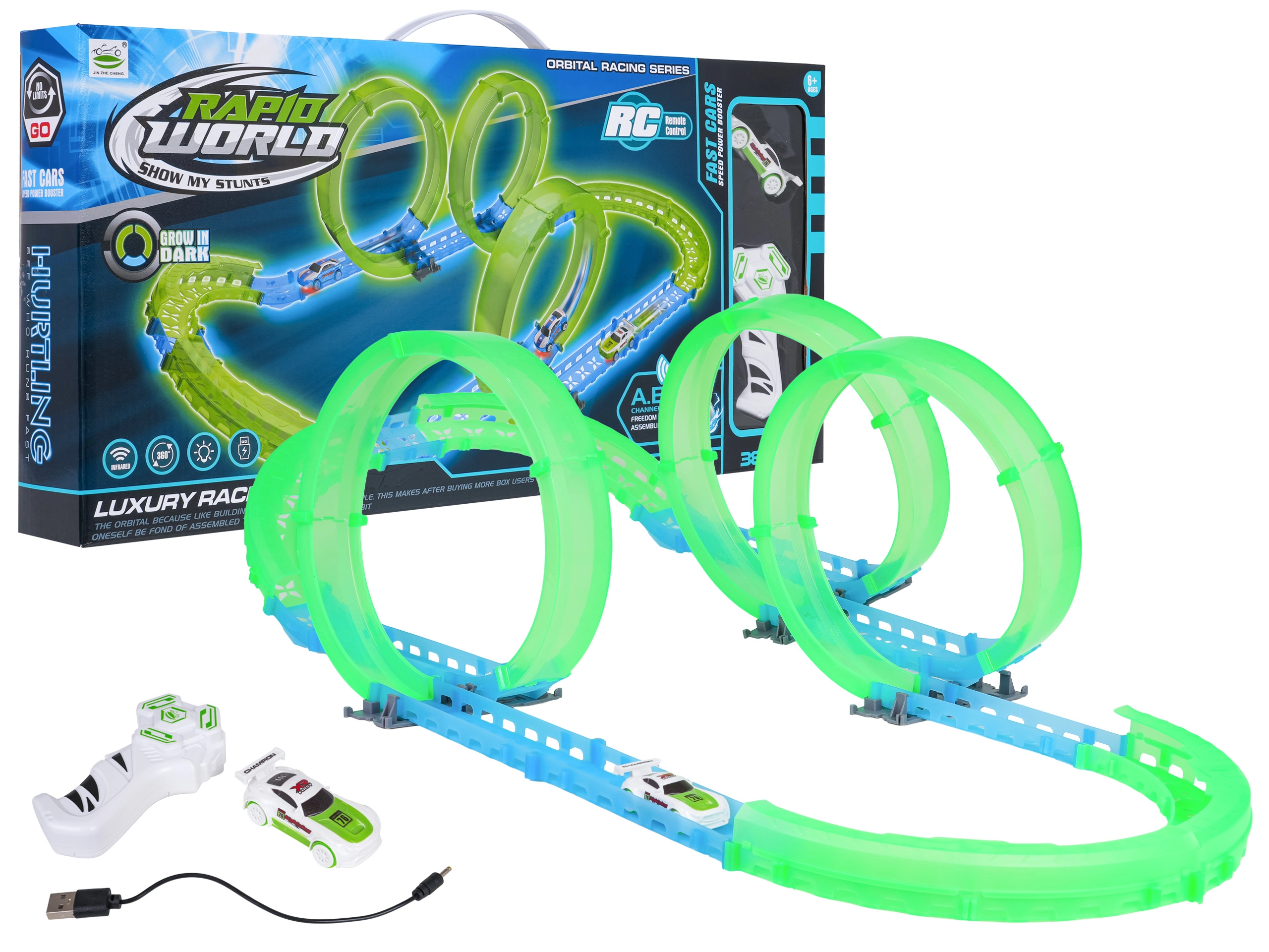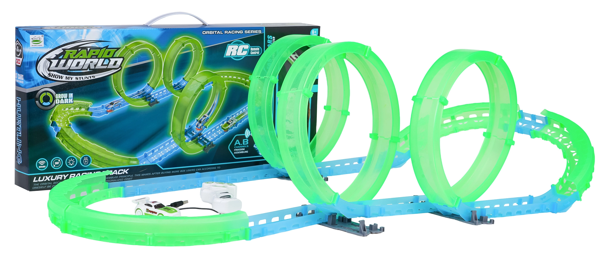Świecący tor wyścigowy dla dzieci od 6 lat oferuje dynamiczną jazdę z samochodzikiem RC z podświetleniem LED. Fluorescencyjny tor świeci w ciemności, autko ładuje się przez USB, a pilot działa na baterie 2× AAA (brak w zestawie). Prosty montaż, świetne efekty świetlne i zabawa rozwijająca koordynację i wyobraźnię.