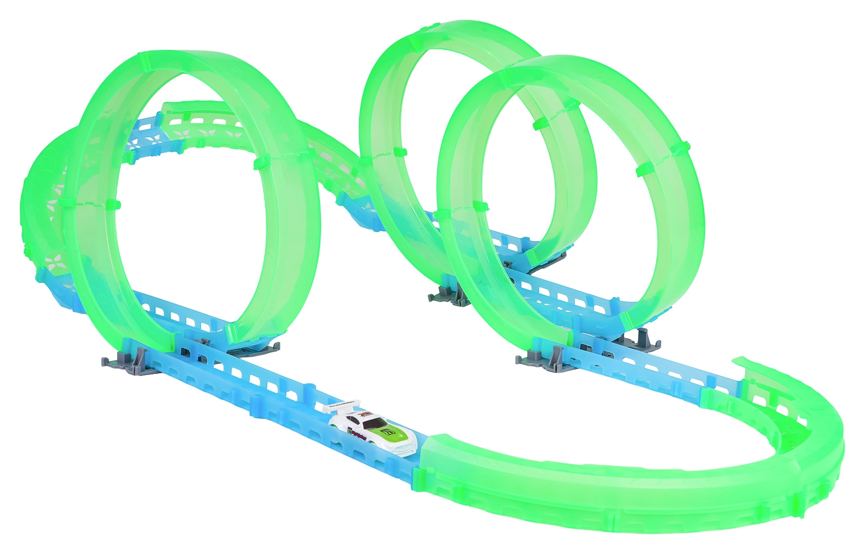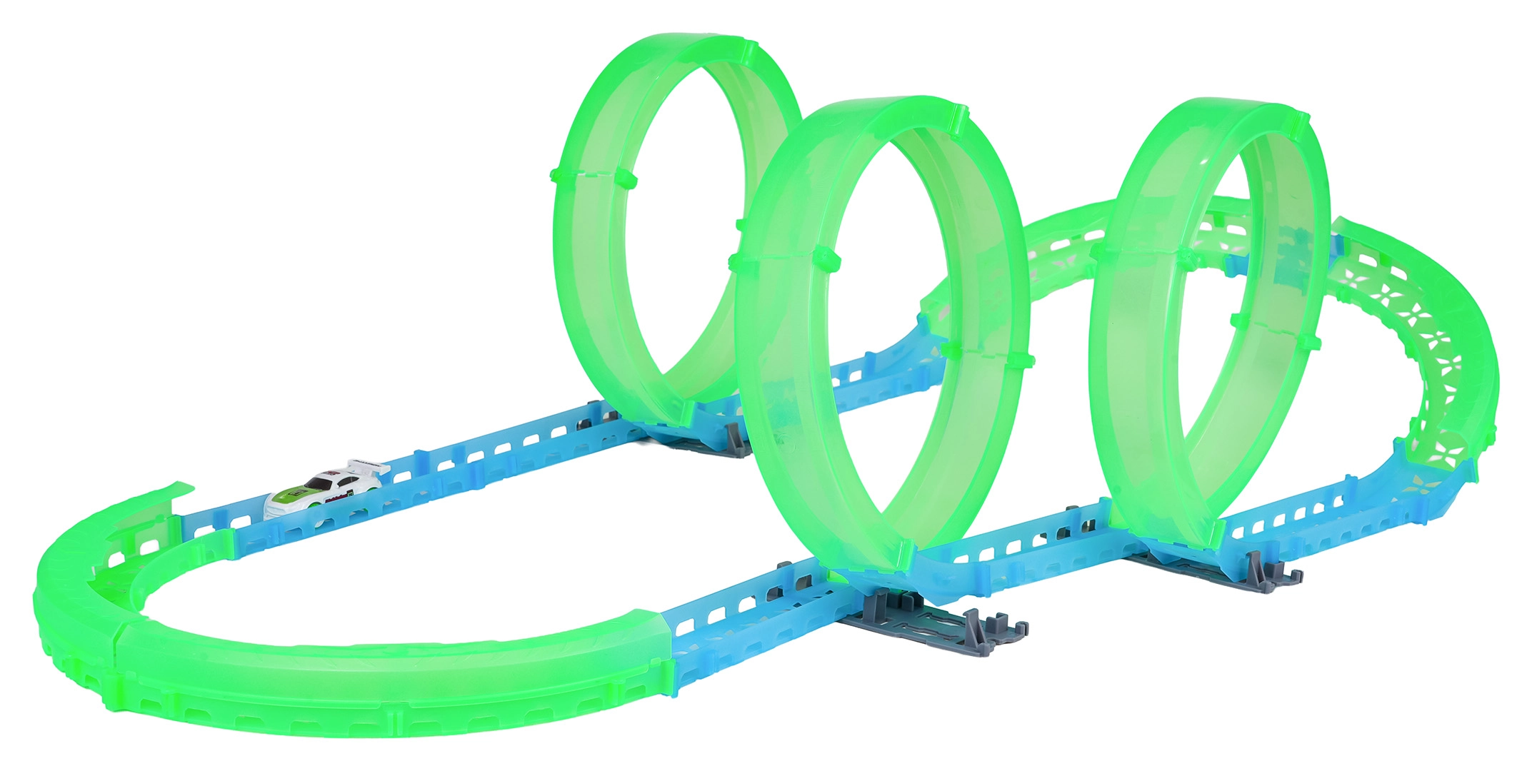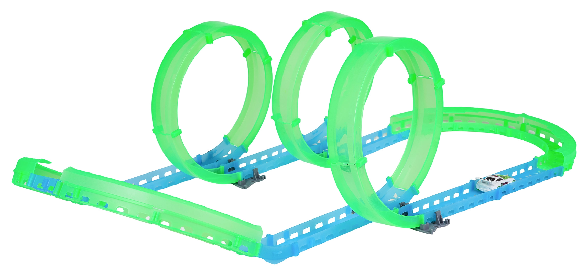 Fluorescencyjny tor rozbłyska po naświetleniu i tworzy magiczną nocną atmosferę wyścigów, która zachwyci dzieci.
