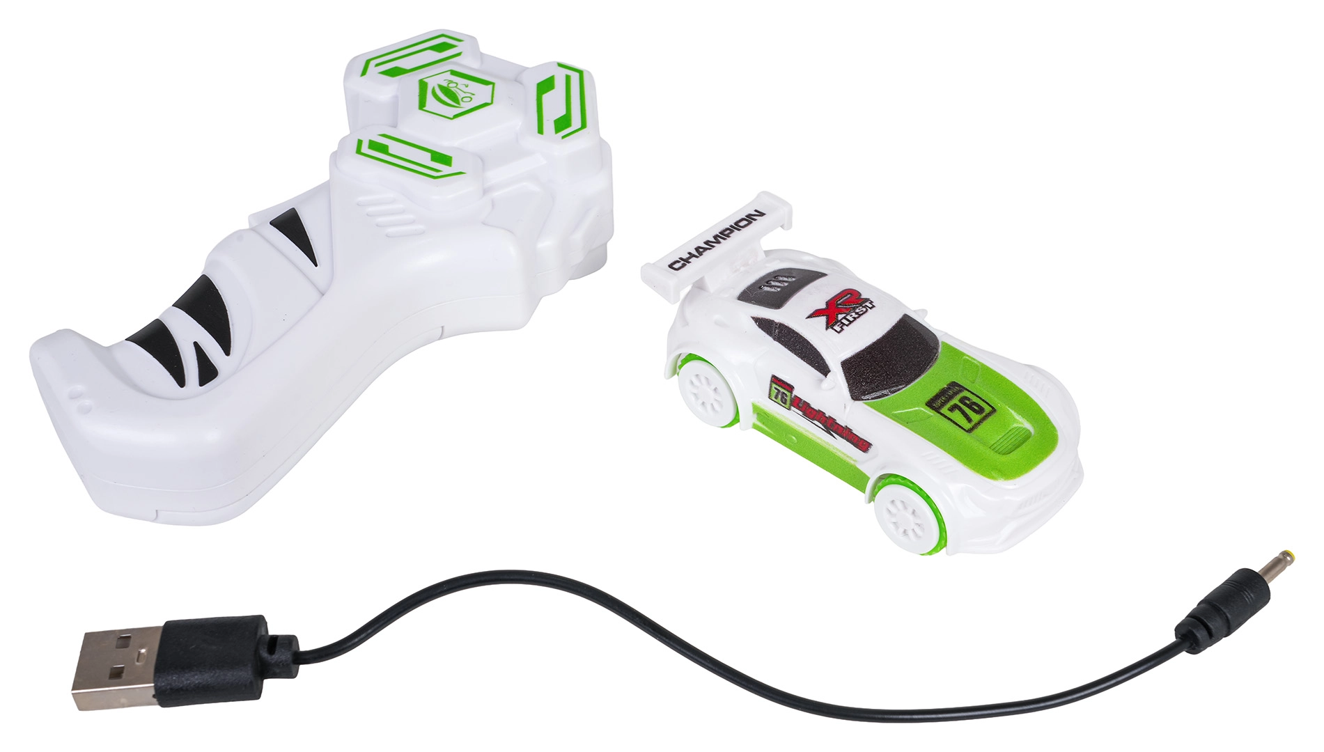 Zbuduj własny kaskaderski tor i ciesz się jazdą także po zmroku. Elementy fluorescencyjne świecą w ciemności, a mały samochodzik RC mknie do przodu po przygotowanej trasie. Dzięki oświetleniu LED tworzy podczas jazdy efektowne świetlne ślady.