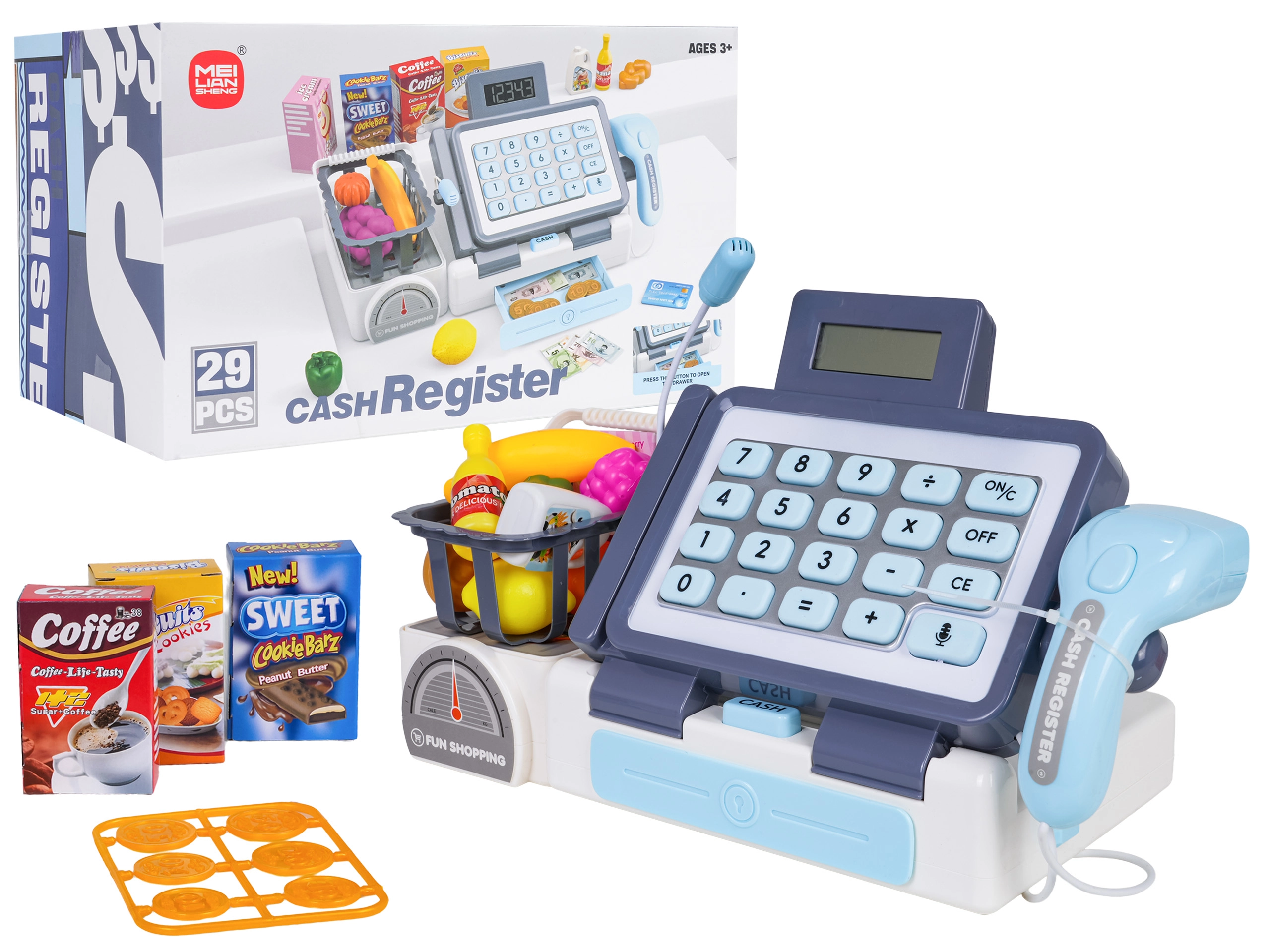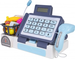 Interaktywna dziecięca kasa fiskalna z bogatym zestawem akcesoriów zapewnia świetną zabawę w sklep dla dzieci od 3 lat. Zawiera działający kalkulator, ręczny skaner ze światłem i dźwiękiem, mikrofon, wagę, otwierana szufladę na pieniądze oraz koszyk na zakupy z artykułami spożywczymi. Idealna do rozwijania wyobraźni, nauki liczenia i zabawy w odgrywanie ról.
