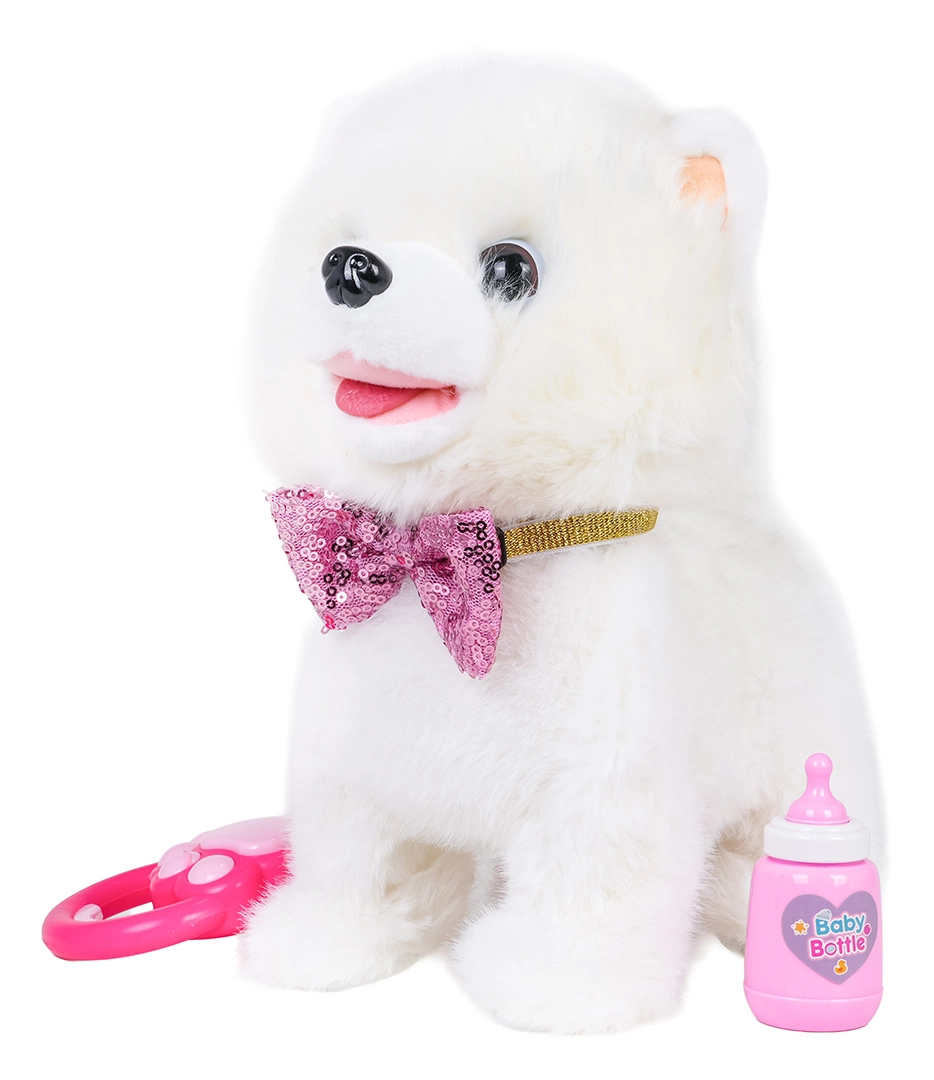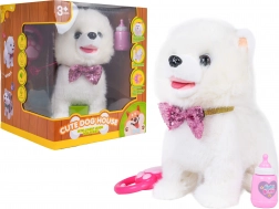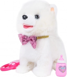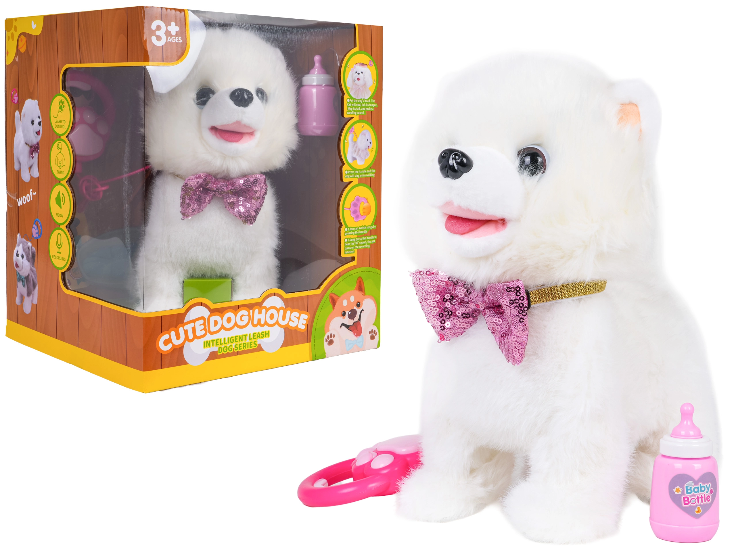 Interaktywny pluszowy piesek biały ze smyczą i buteleczką