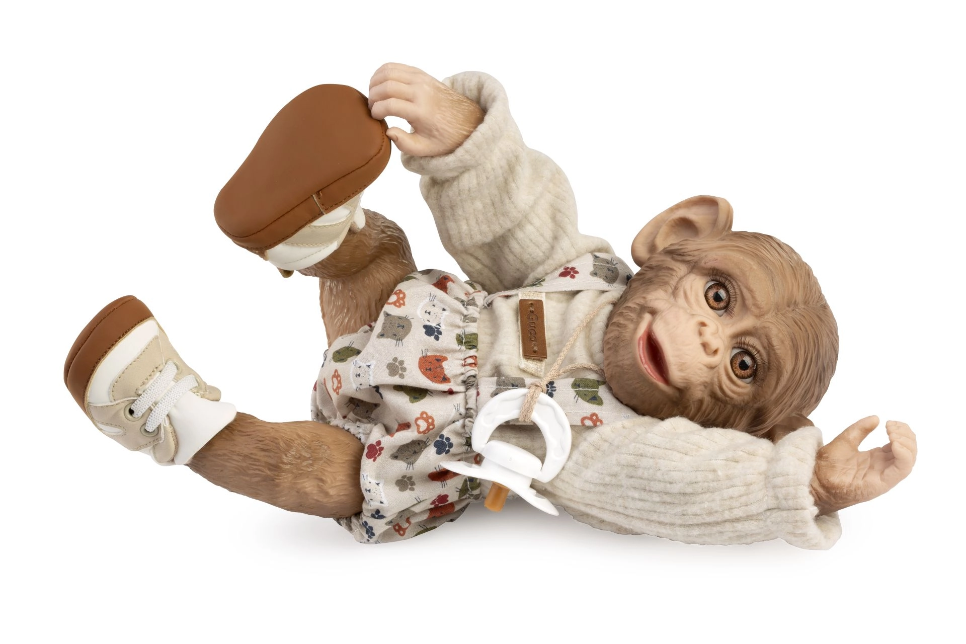 Uroczy 3‑częściowy zestaw ubranek dla małpki bobaska REBORN o wysokości 32 cm zawiera stylowe elementy i wygodne buciki. Idealnie leżą, są delikatne dla dziecięcej skóry i świetne do kreatywnej zabawy. Ręcznie wykonane w Hiszpanii z dbałością o jakość i detale. Kompletny strój, ręczne wykonanie, miękkie materiały, łatwe ubieranie.