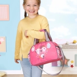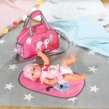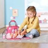 W skład torby wchodzą mata do przewijania, zapasowa pieluszka i pojemnik na puder – dzieci mają pod ręką kompletny zestaw do pielęgnacji lalki.