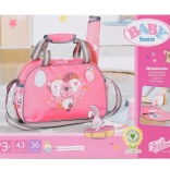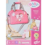 Praktyczna torba do przewijania dla lalek BABY born oferuje wszystko, co potrzebne w pielęgnacji w podróży: matę do przewijania, zapasową pieluszkę i pojemnik na puder. Dzięki wystarczającej przestrzeni do przechowywania, wygodnemu noszeniu na ramieniu i w ręce oraz uroczym zawieszkom jest idealna do kreatywnej zabawy i rozwoju umiejętności opiekuńczych.