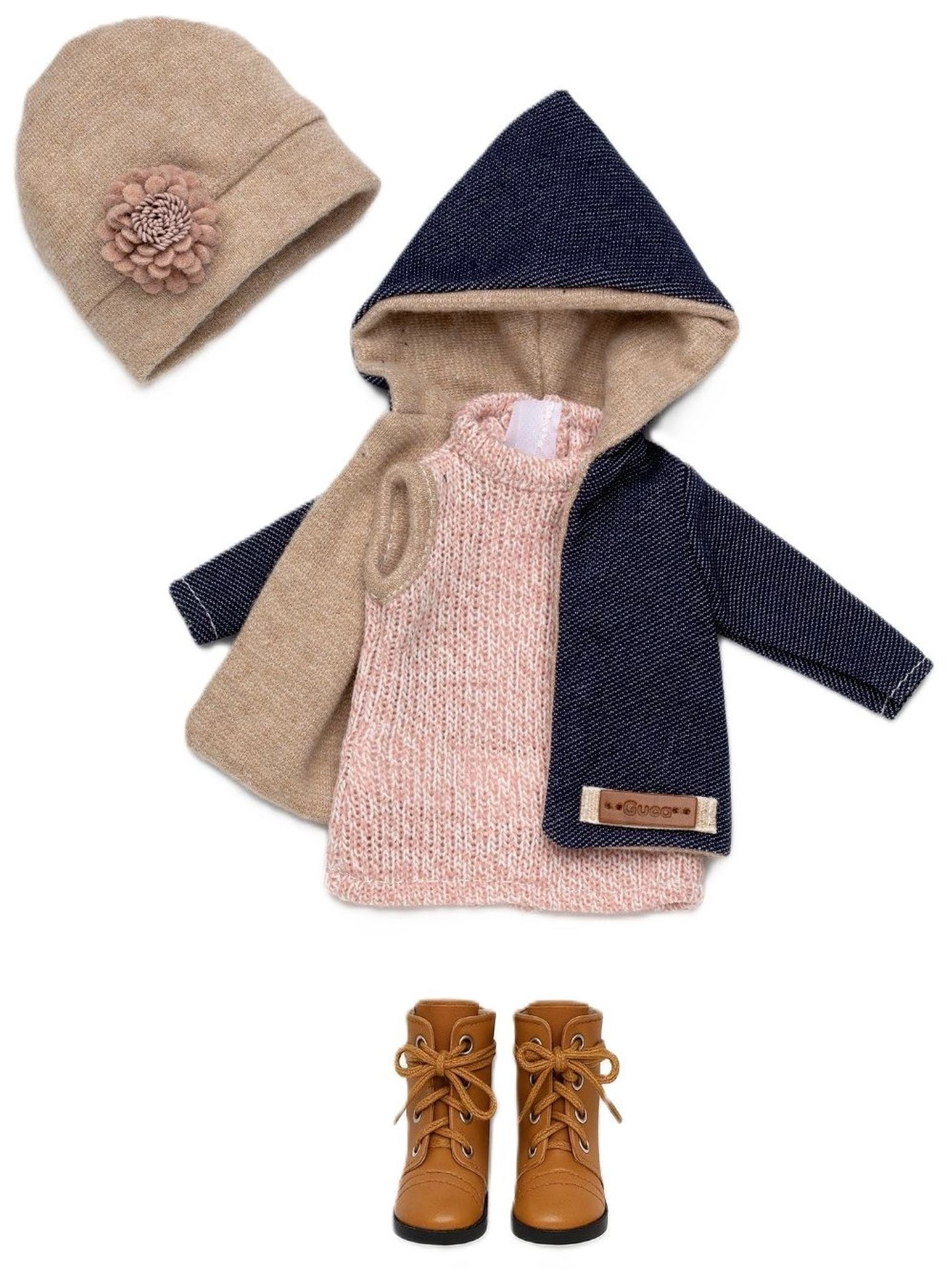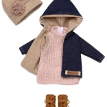 Płaszczyk z kapturem i dzianinowe detale utrzymają lalkę w cieple, a buciki dodadzą całości realistycznego charakteru.