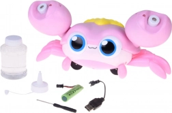 Krab porusza się na małych kółkach i z szczypiec wypuszcza strumień delikatnych baniek – idealny do ogrodu, na balkon i dziecięce przyjęcia.