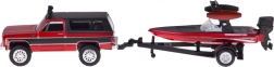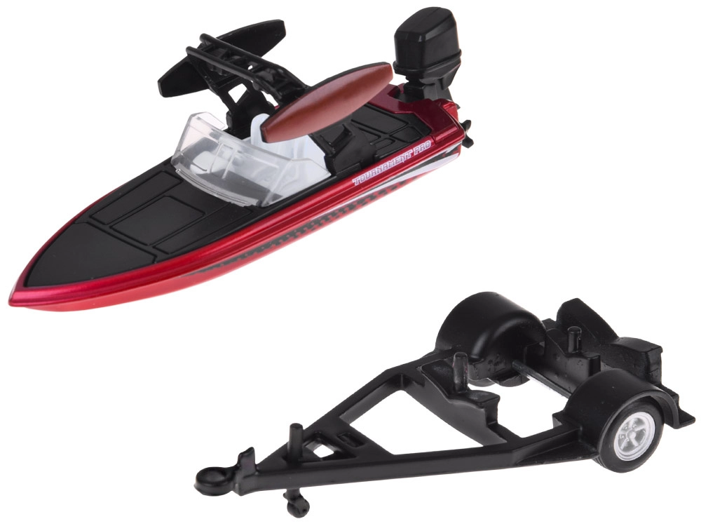 Model oferuje funkcjonalne urządzenie holownicze z możliwością odłączenia przyczepy, realistycznie wykonaną łódź z silnikiem zaburtowym oraz gładko toczące się koła dla płynnej jazdy. Świetnie prezentuje się w gablocie, a zarazem wytrzymuje codzienną zabawę.