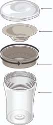 Kubeczek składa się jedynie z trzech części, więc bardzo łatwo go rozłożyć i wyczyścić, a także jest odpowiedni do zmywarki. Materiały PP i silikon nie zawierają BPA i spełniają normę EN 14350. Zgodność z linią NUK Easy Learning ułatwia wymianę elementów w zależności od potrzeb.