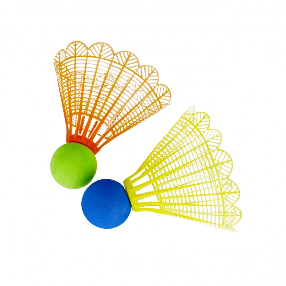 Kolorowe koszyczki z piankowym rdzeniem lecą wolniej i stabilniej, dzięki czemu dzieci łatwiej trafiają i dłużej utrzymują wymianę.