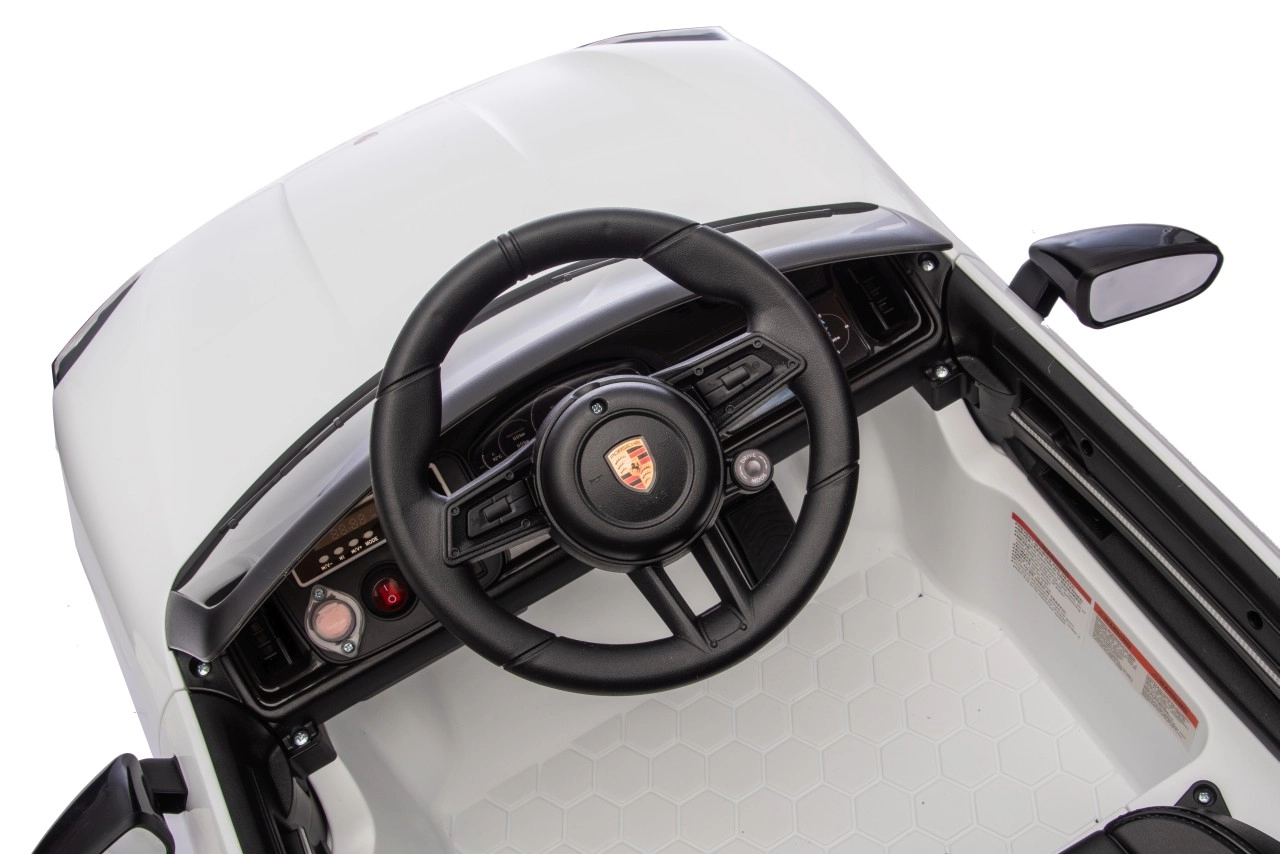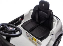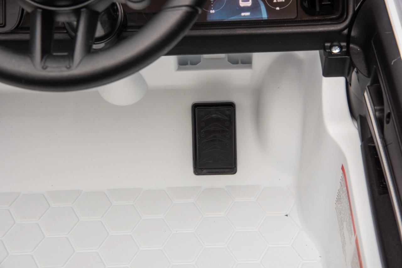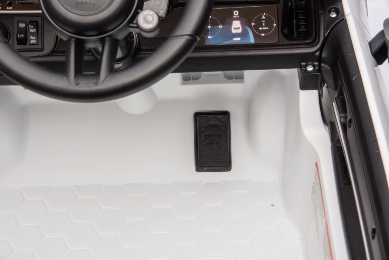 Dla maksymalnego bezpieczeństwa rodziców i dzieci nie zabrakło pilota 2,4 GHz z trzema prędkościami i awaryjnym przyciskiem Stop. Wnętrze zachwyca czarnym siedziskiem z ekoskóry z pasem, funkcjonalnym panelem z MP3/Bluetooth/FM oraz przyciskami klaksonu i dźwięków na kierownicy. Otwierane drzwi, światła LED i wysokiej jakości wykonanie podkreślają atrakcyjny wygląd i codzienną frajdę z jazdy.