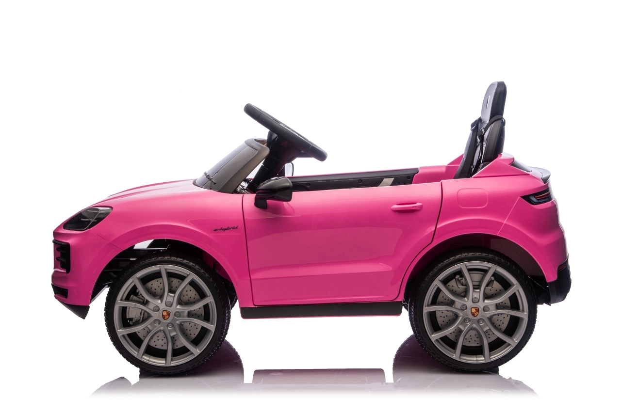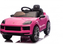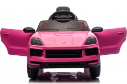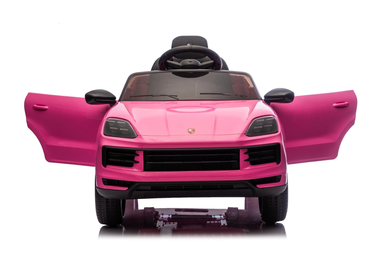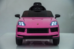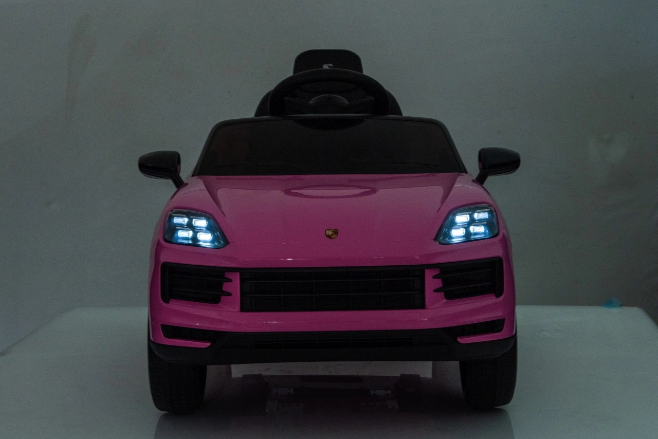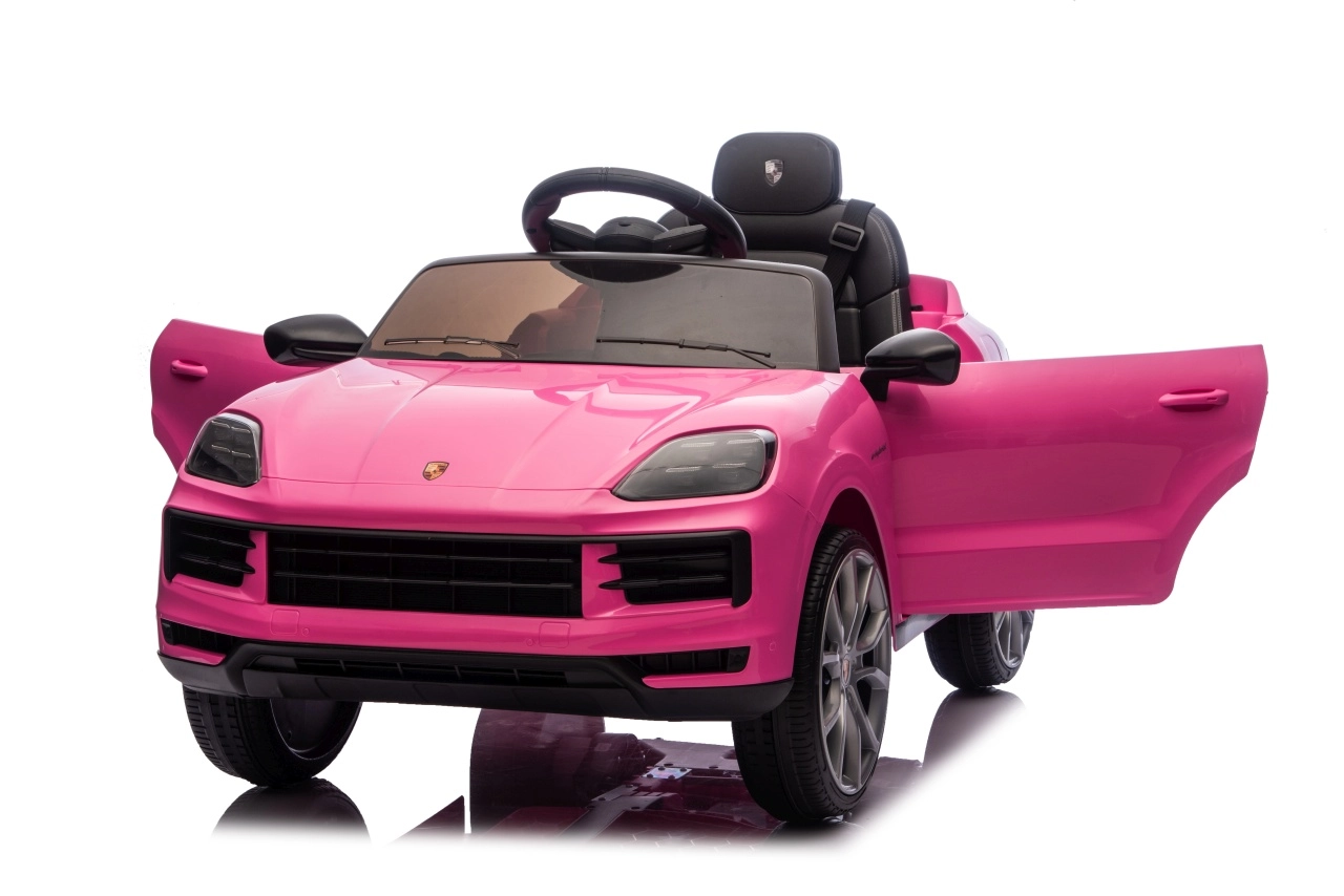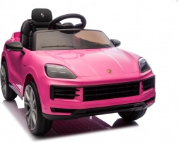 Stylowy dziecięcy elektryczny samochód inspirowany modelem Porsche Cayenne w różowym kolorze ucieszy każdego małego kierowcę. Oferuje 2 wydajne silniki 45 W, akumulator 12 V 7 Ah, wygodne siedzisko z eko skóry z pasami bezpieczeństwa, piankowe koła EVA dla cichej jazdy oraz światła LED. Rodzicielski pilot 2,4 GHz z 3 prędkościami i bezpiecznym przyciskiem Stop zapewnia maksymalną kontrolę.