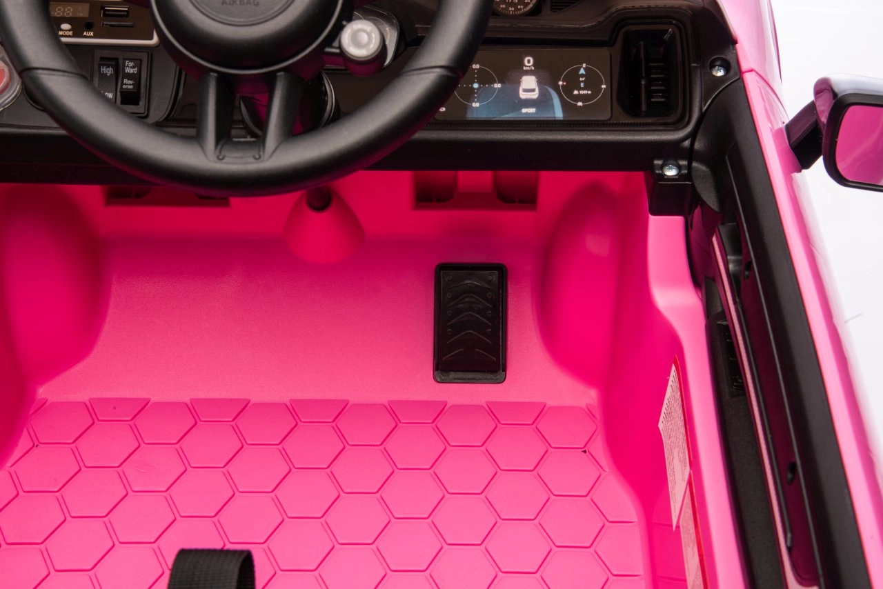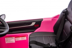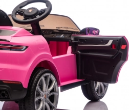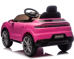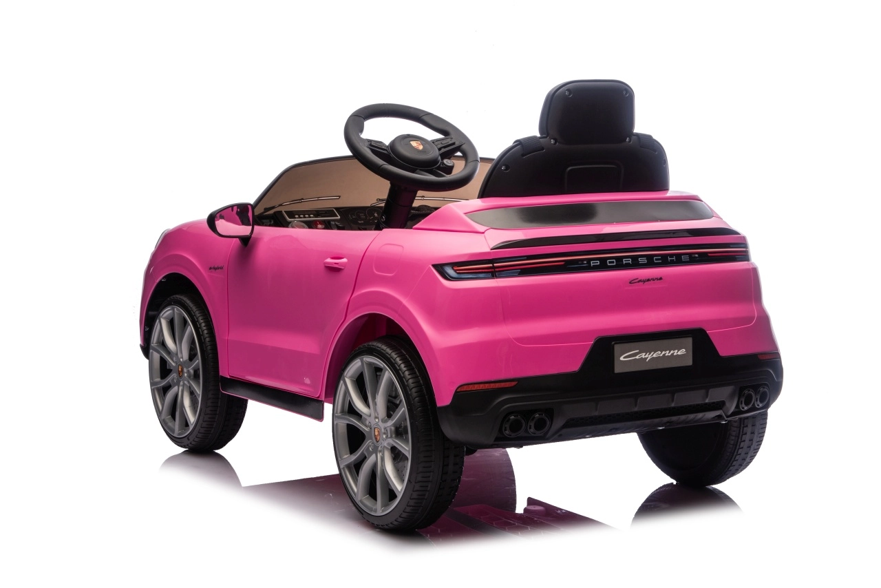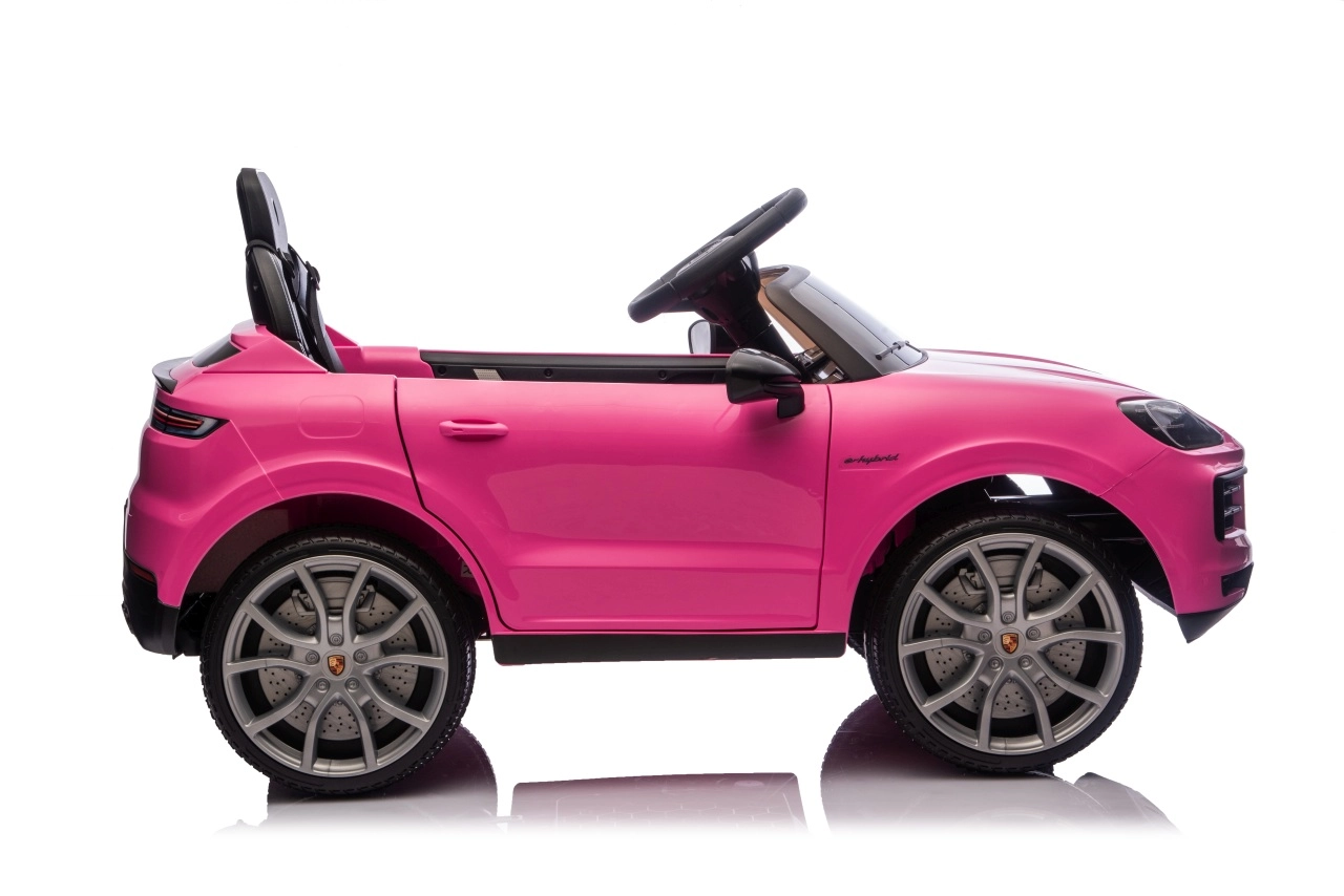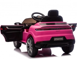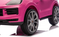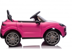 Stylowy dziecięcy elektryczny samochód inspirowany modelem Porsche Cayenne w różowym kolorze ucieszy każdego małego kierowcę. Oferuje 2 wydajne silniki 45 W, akumulator 12 V 7 Ah, wygodne siedzisko z eko skóry z pasami bezpieczeństwa, piankowe koła EVA dla cichej jazdy oraz światła LED. Rodzicielski pilot 2,4 GHz z 3 prędkościami i bezpiecznym przyciskiem Stop zapewnia maksymalną kontrolę.