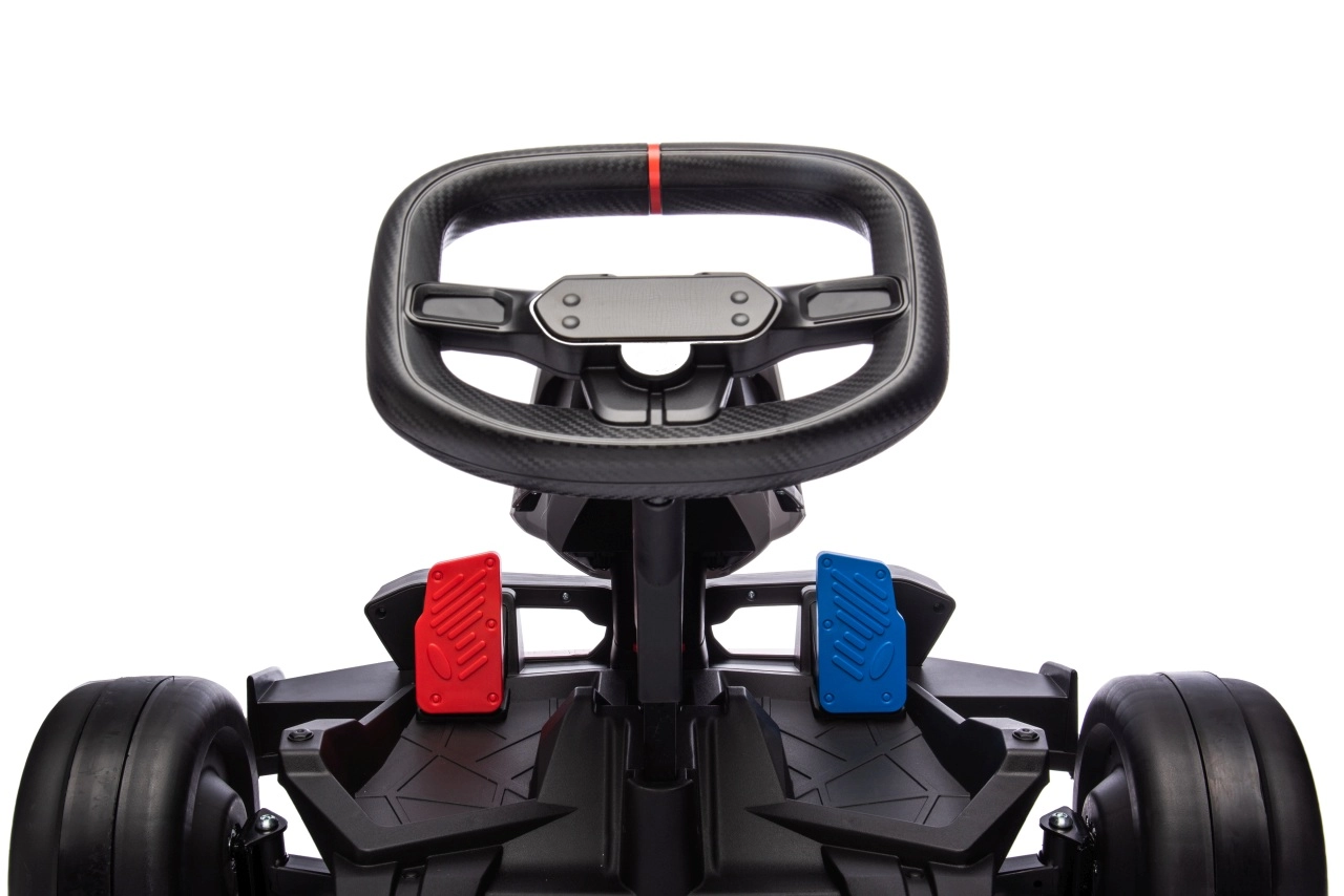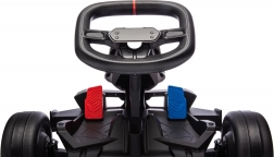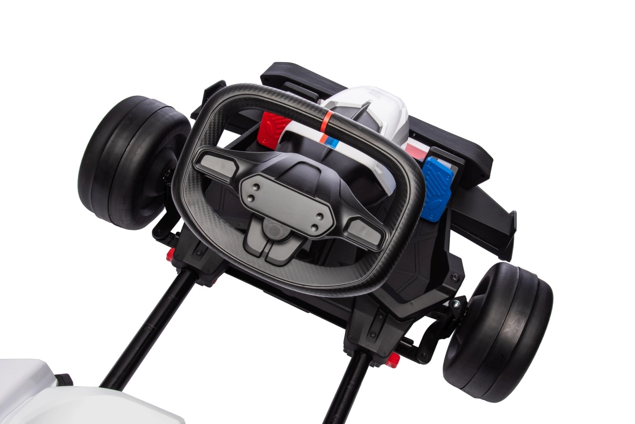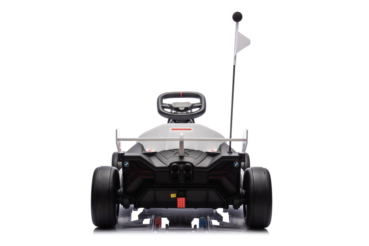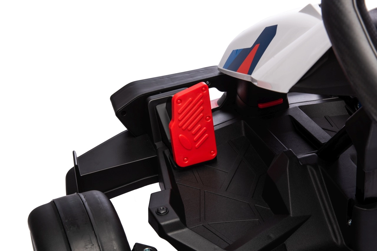 Elektryczny gokart BMW dla dzieci wyróżnia się autentycznym, wyścigowym stylem i możliwością driftowania dzięki specjalnym kołom. Dwa silniki 2×200 W w połączeniu z baterią 24V zapewniają żwawą akcelerację i długi czas pracy, a płynny start gwarantuje komfortowe ruszanie bez szarpnięć. Sterowanie jest intuicyjne – przód/tył – idealne dla początkujących i małych miłośników szybkiej jazdy.