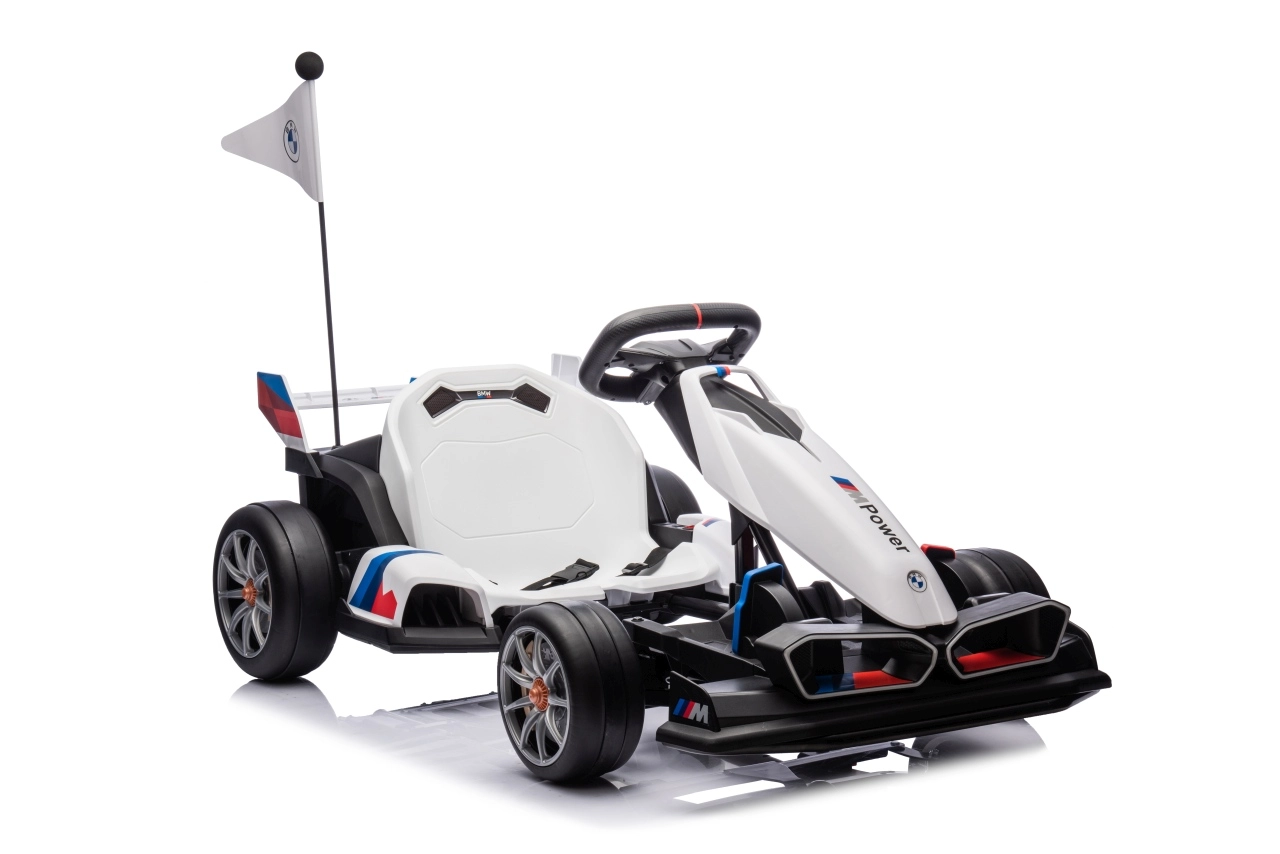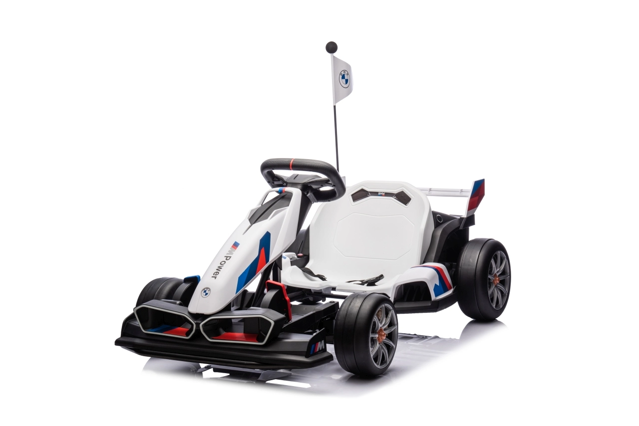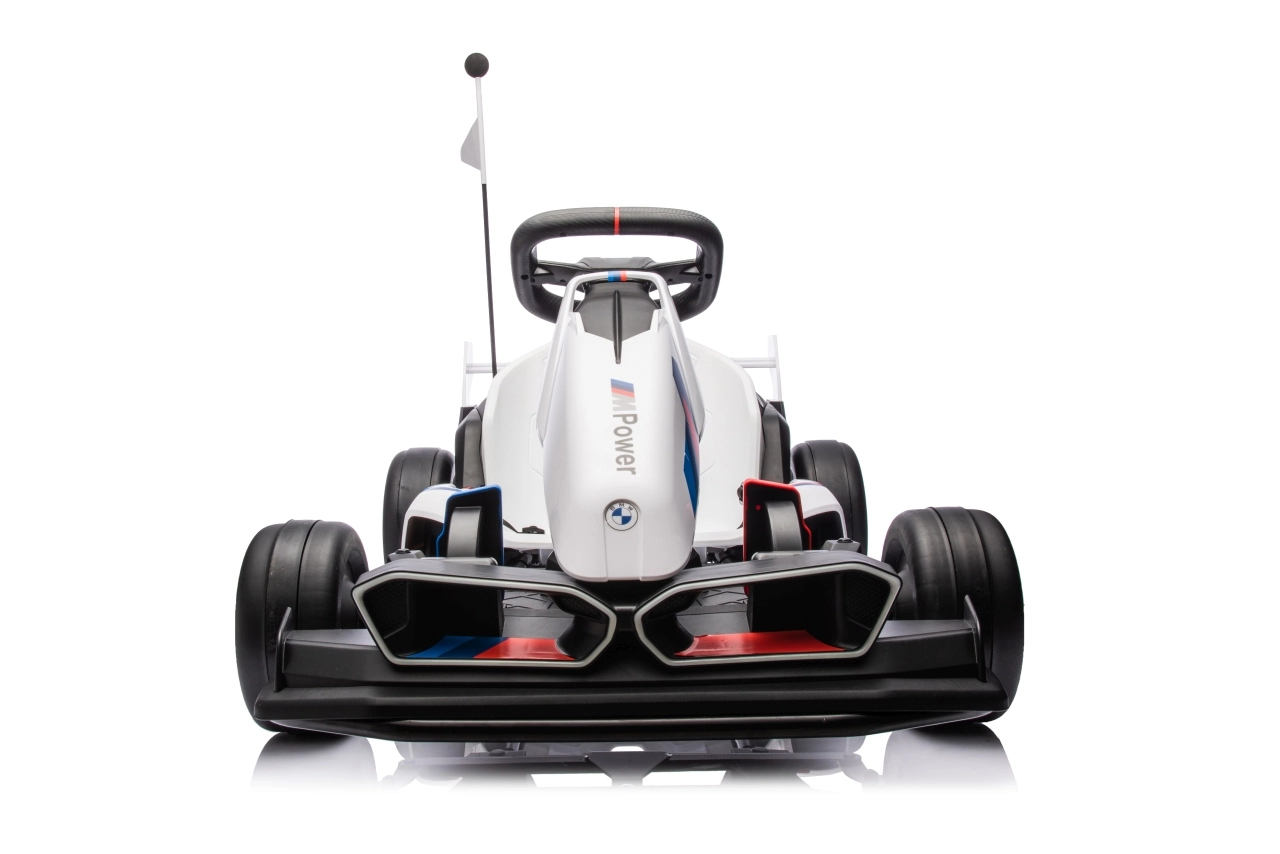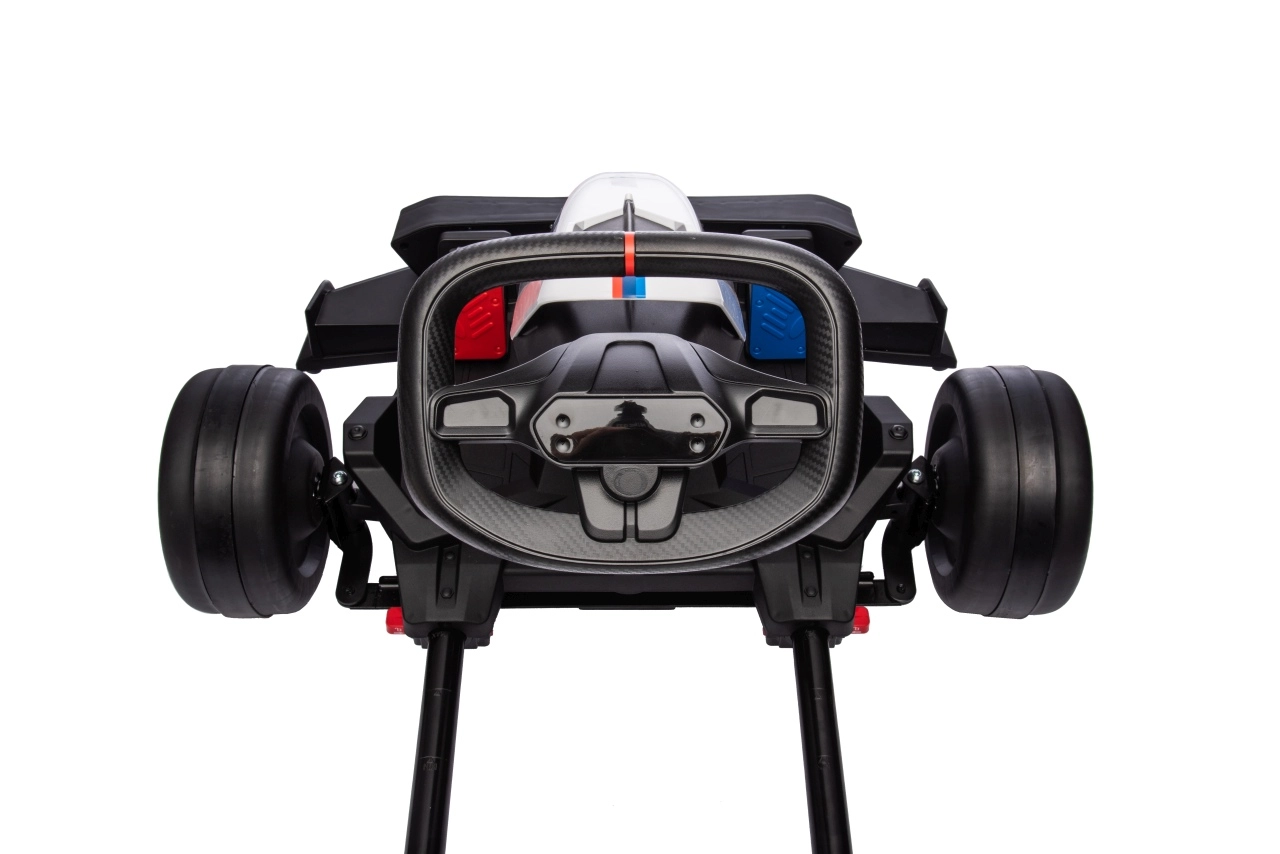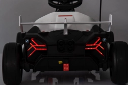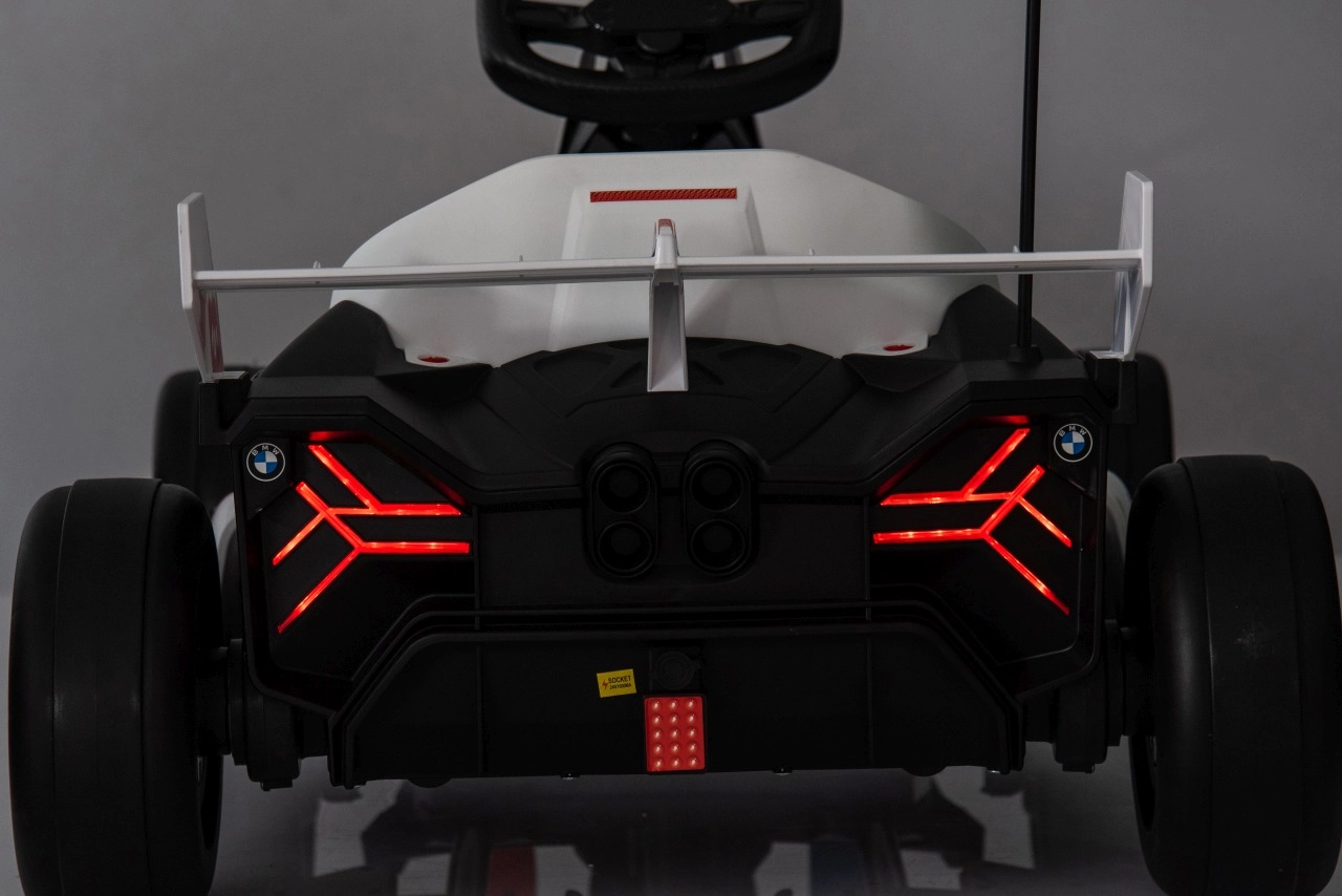Elektryczny gokart BMW dla dzieci wyróżnia się autentycznym, wyścigowym stylem i możliwością driftowania dzięki specjalnym kołom. Dwa silniki 2×200 W w połączeniu z baterią 24V zapewniają żwawą akcelerację i długi czas pracy, a płynny start gwarantuje komfortowe ruszanie bez szarpnięć. Sterowanie jest intuicyjne – przód/tył – idealne dla początkujących i małych miłośników szybkiej jazdy.