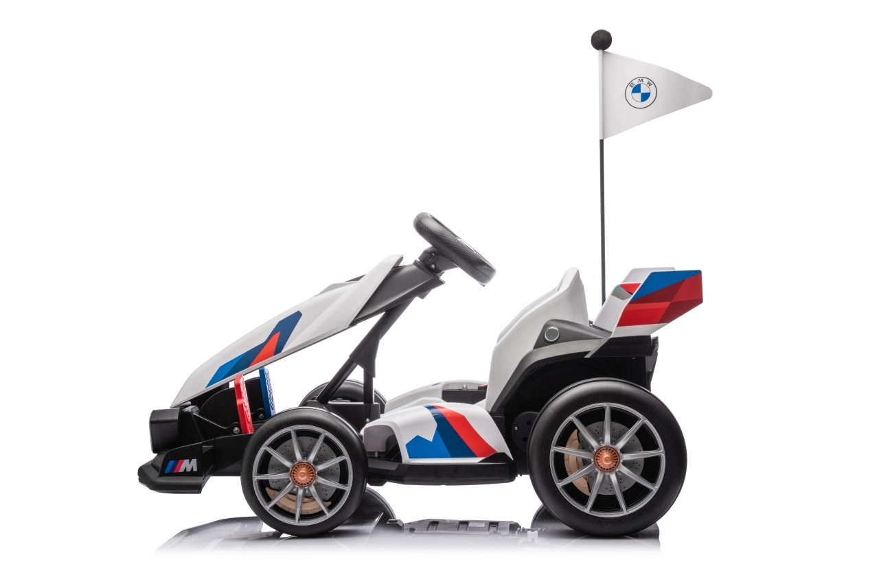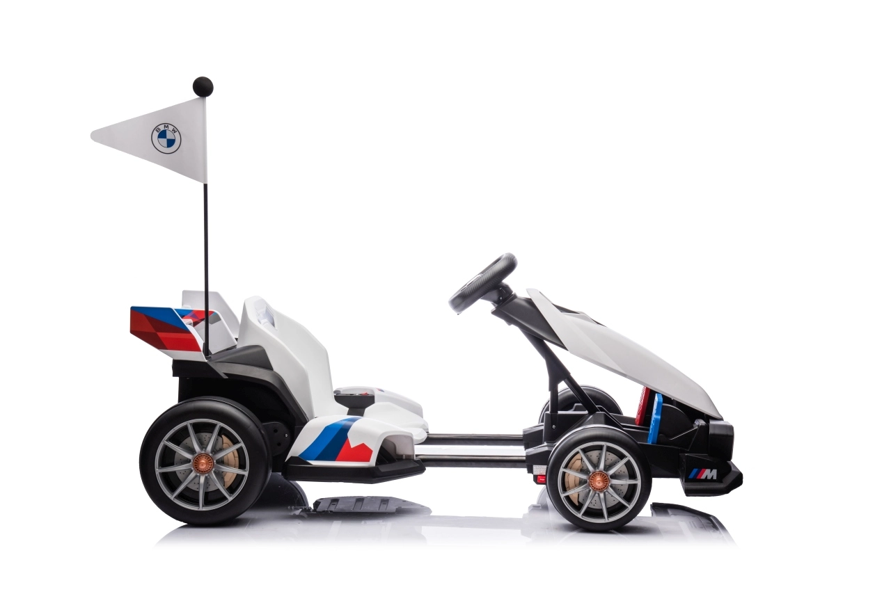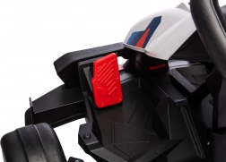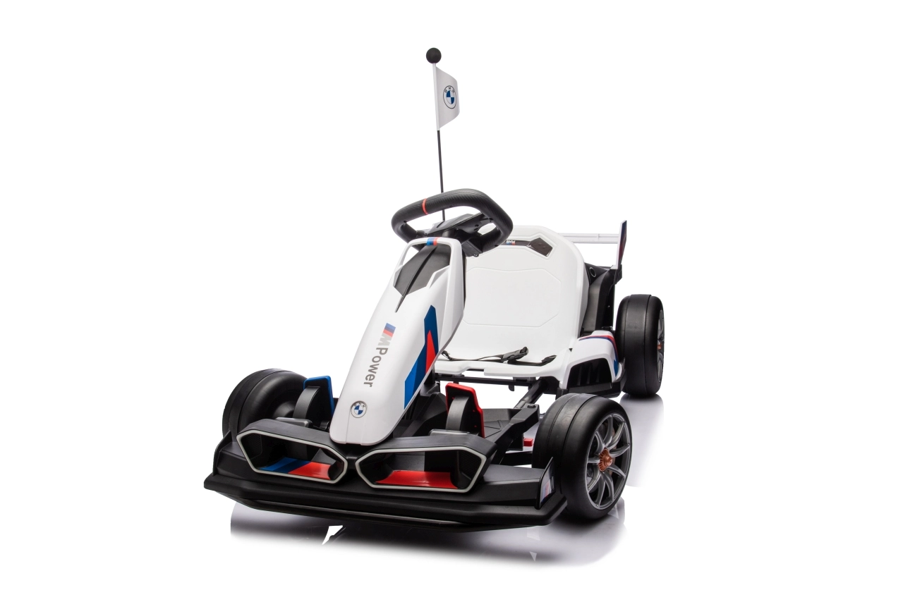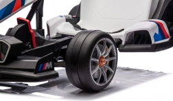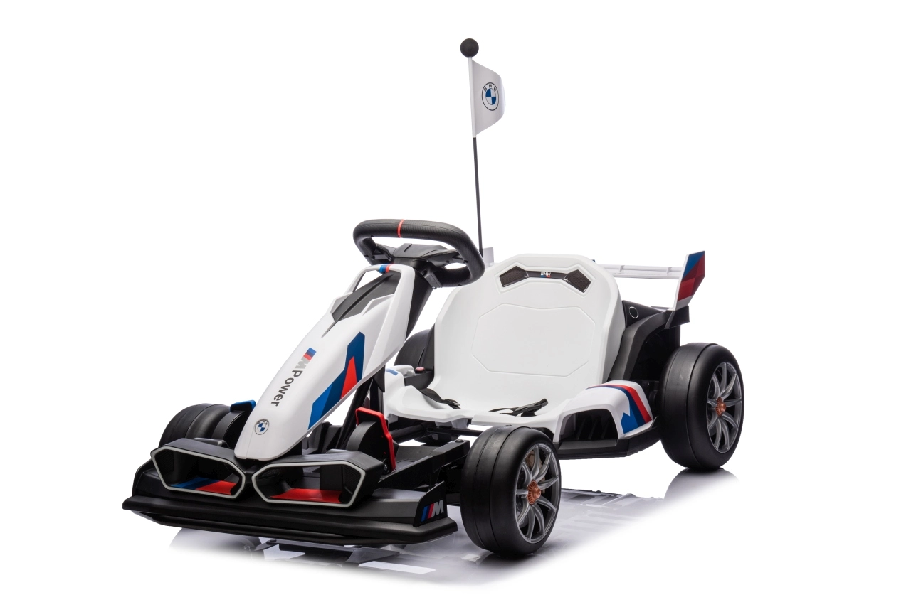 Elektryczny gokart BMW dla dzieci wyróżnia się autentycznym, wyścigowym stylem i możliwością driftowania dzięki specjalnym kołom. Dwa silniki 2×200 W w połączeniu z baterią 24V zapewniają żwawą akcelerację i długi czas pracy, a płynny start gwarantuje komfortowe ruszanie bez szarpnięć. Sterowanie jest intuicyjne – przód/tył – idealne dla początkujących i małych miłośników szybkiej jazdy.