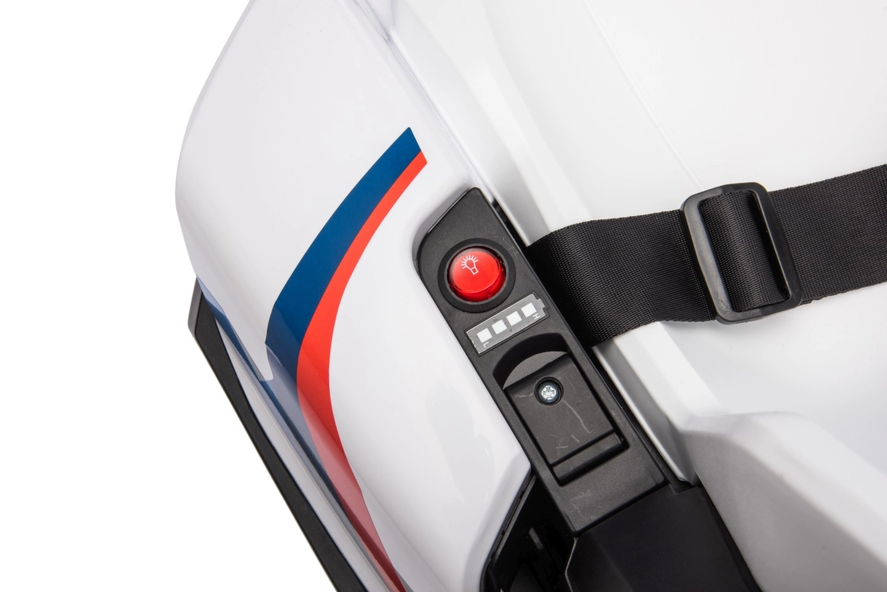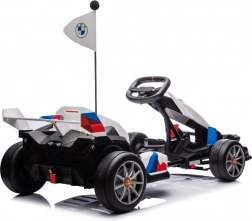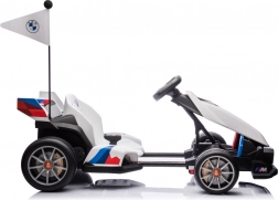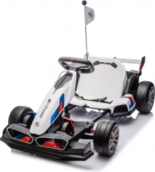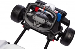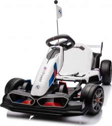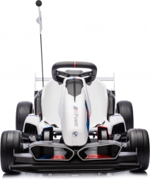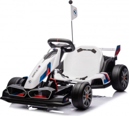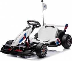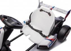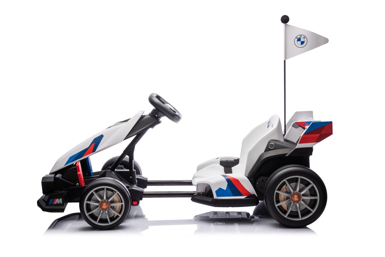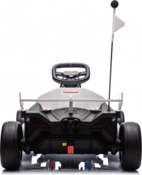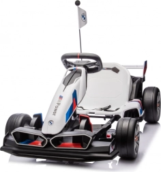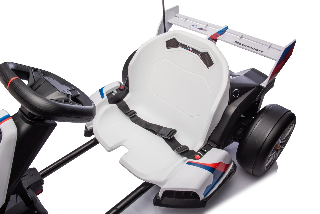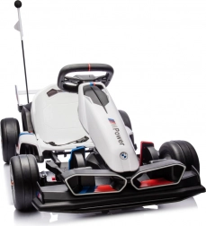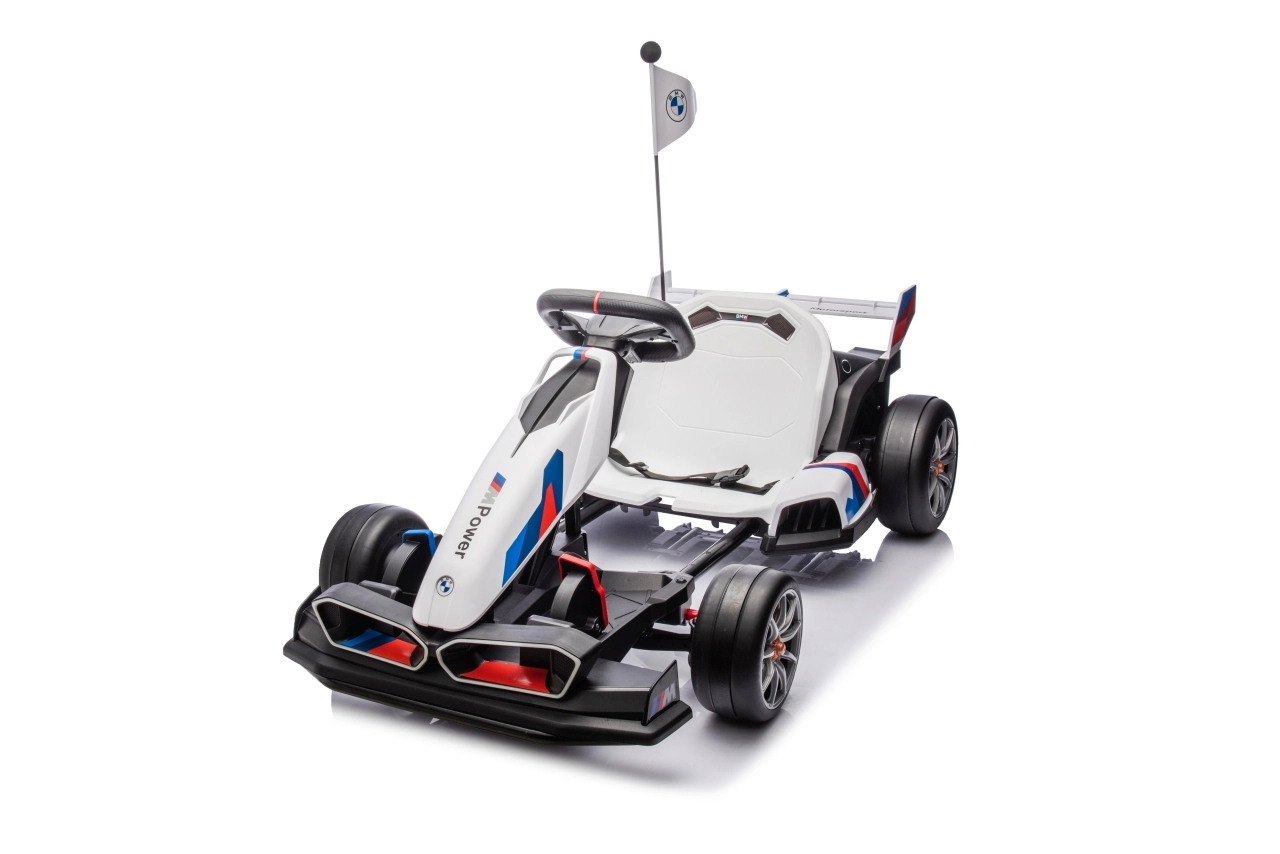 Elektryczny gokart BMW dla dzieci wyróżnia się autentycznym, wyścigowym stylem i możliwością driftowania dzięki specjalnym kołom. Dwa silniki 2×200 W w połączeniu z baterią 24V zapewniają żwawą akcelerację i długi czas pracy, a płynny start gwarantuje komfortowe ruszanie bez szarpnięć. Sterowanie jest intuicyjne – przód/tył – idealne dla początkujących i małych miłośników szybkiej jazdy.