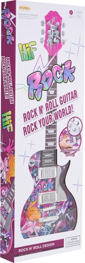 Ta atrakcyjna różowa gitara elektryczna dla dzieci została zaprojektowana tak, by wyglądem przypominała prawdziwy instrument i motywowała najmłodszych do muzycznych początków. Dzięki przejrzystym elementom sterującym dzieci łatwo wybiorą głośność, rytm i efekty dźwiękowe, a także odtworzą 8 wstępnie ustawionych melodii jako podkład.