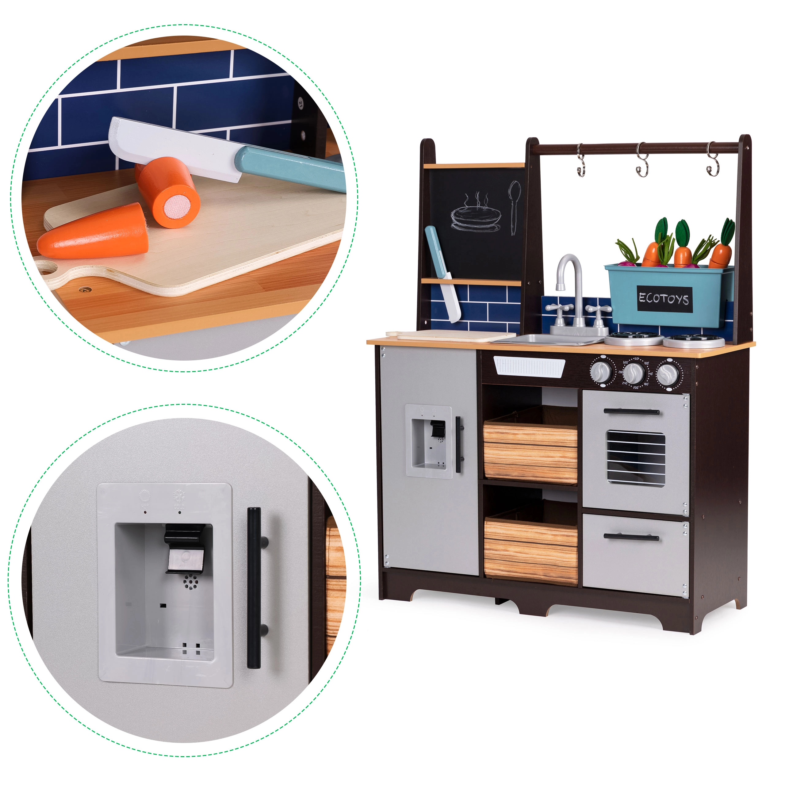 Duża drewniana kuchnia dziecięca z ladą na warzywa i akcesoriami ECOTOYS