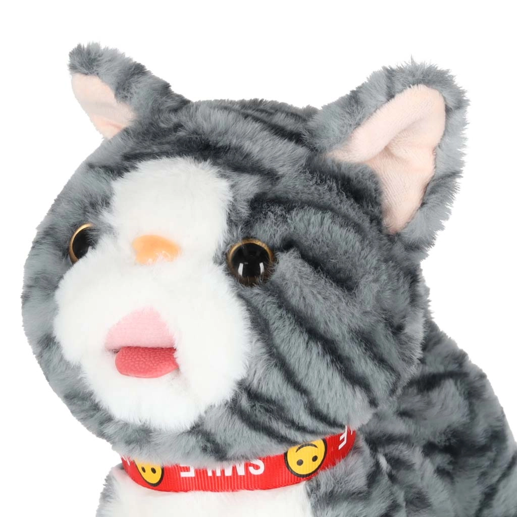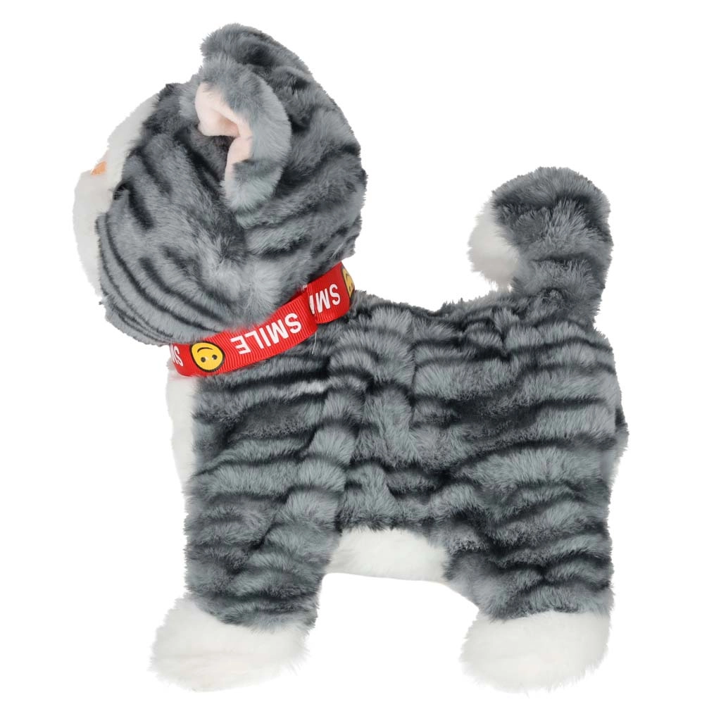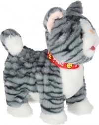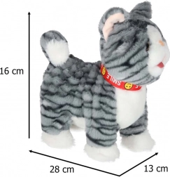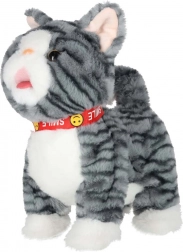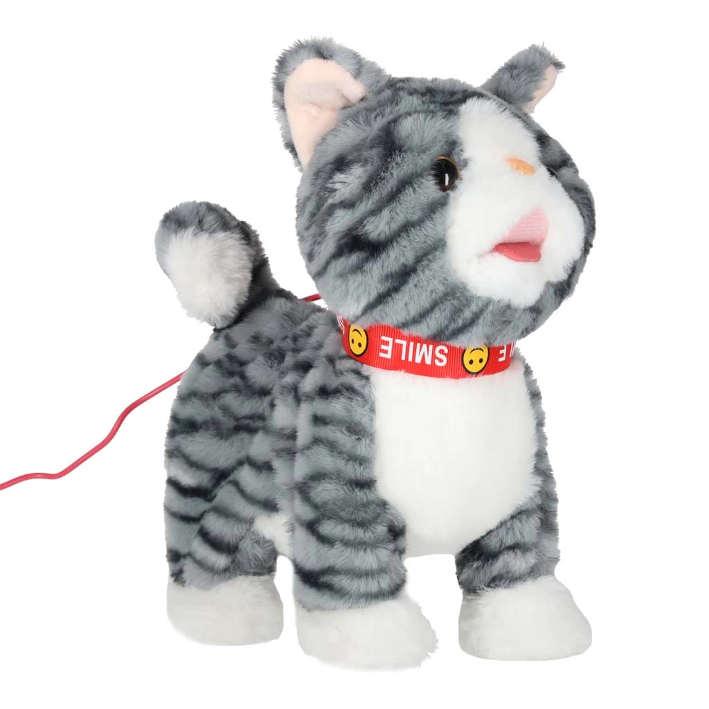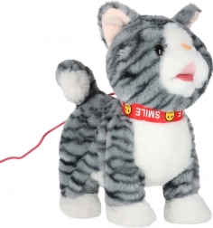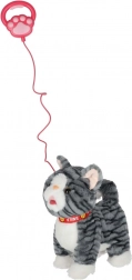 Interaktywna pluszowa kotka na smyczy – miauczy, chodzi i merda ogonem, szara
