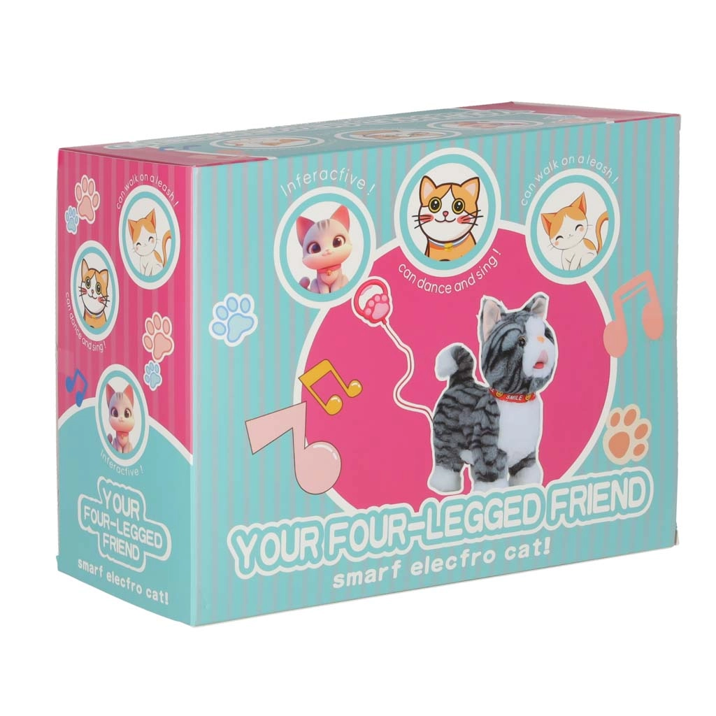 Po naciśnięciu przycisku na smyczy kotka rusza do przodu i odtwarza radosne piosenki. Dzieci mogą cieszyć się spacerami ze swoim „pupilkiem” w domu i na zewnątrz.