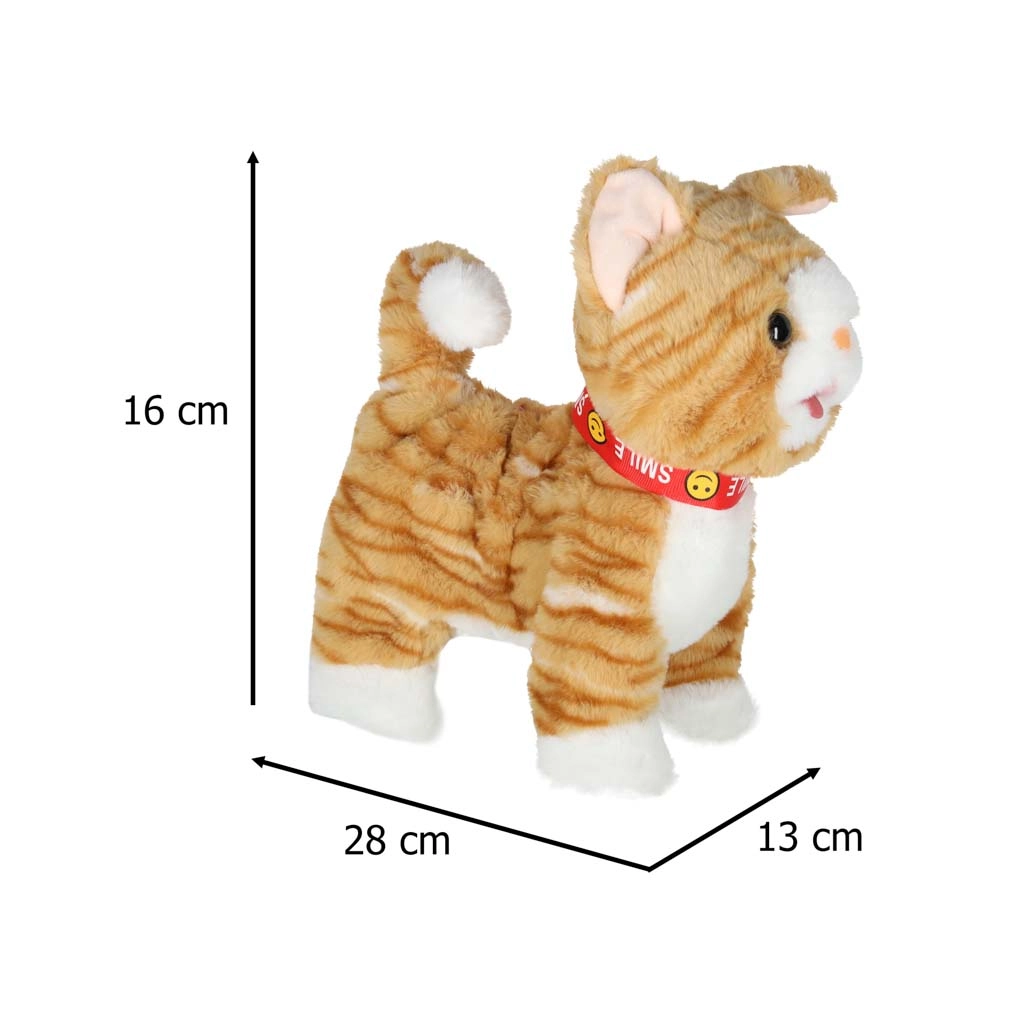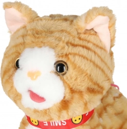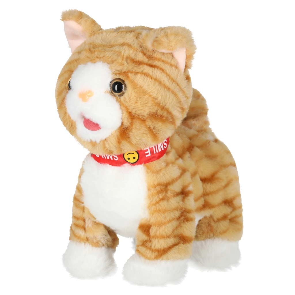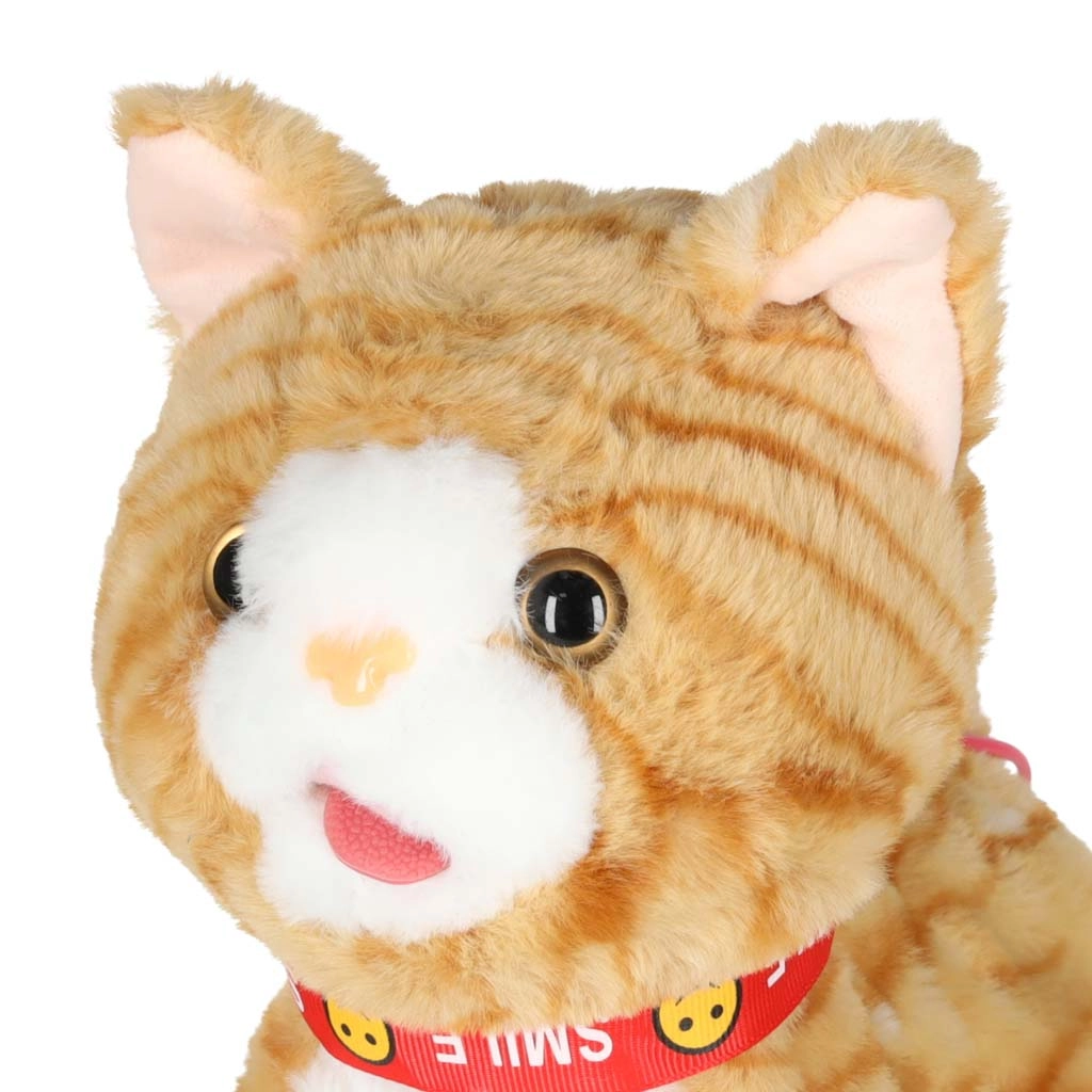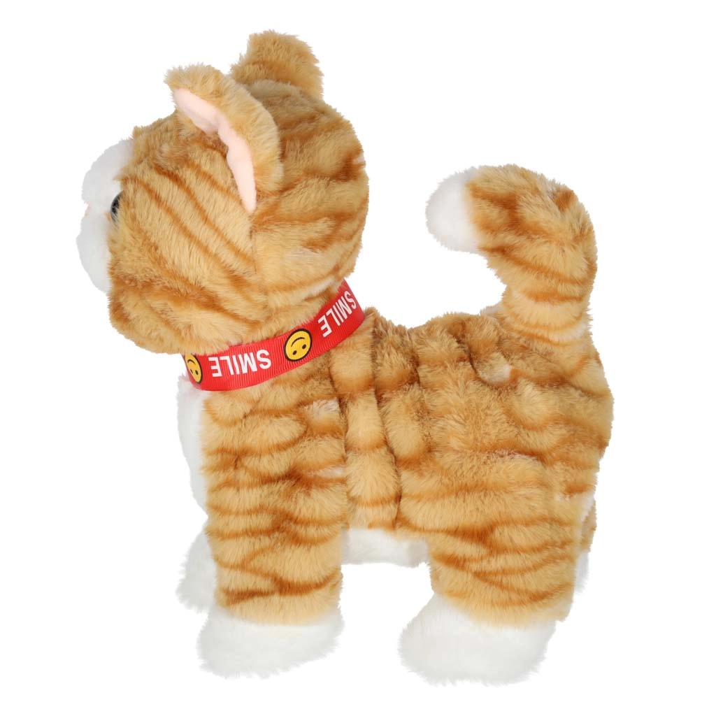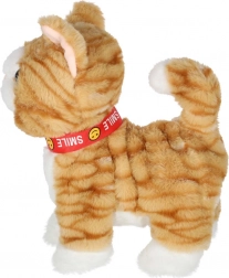 Miękkie, prążkowane futerko z białymi detalami i urocza obroża czynią kotkę idealną towarzyszką do przytulania oraz ozdobą dziecięcego pokoju.