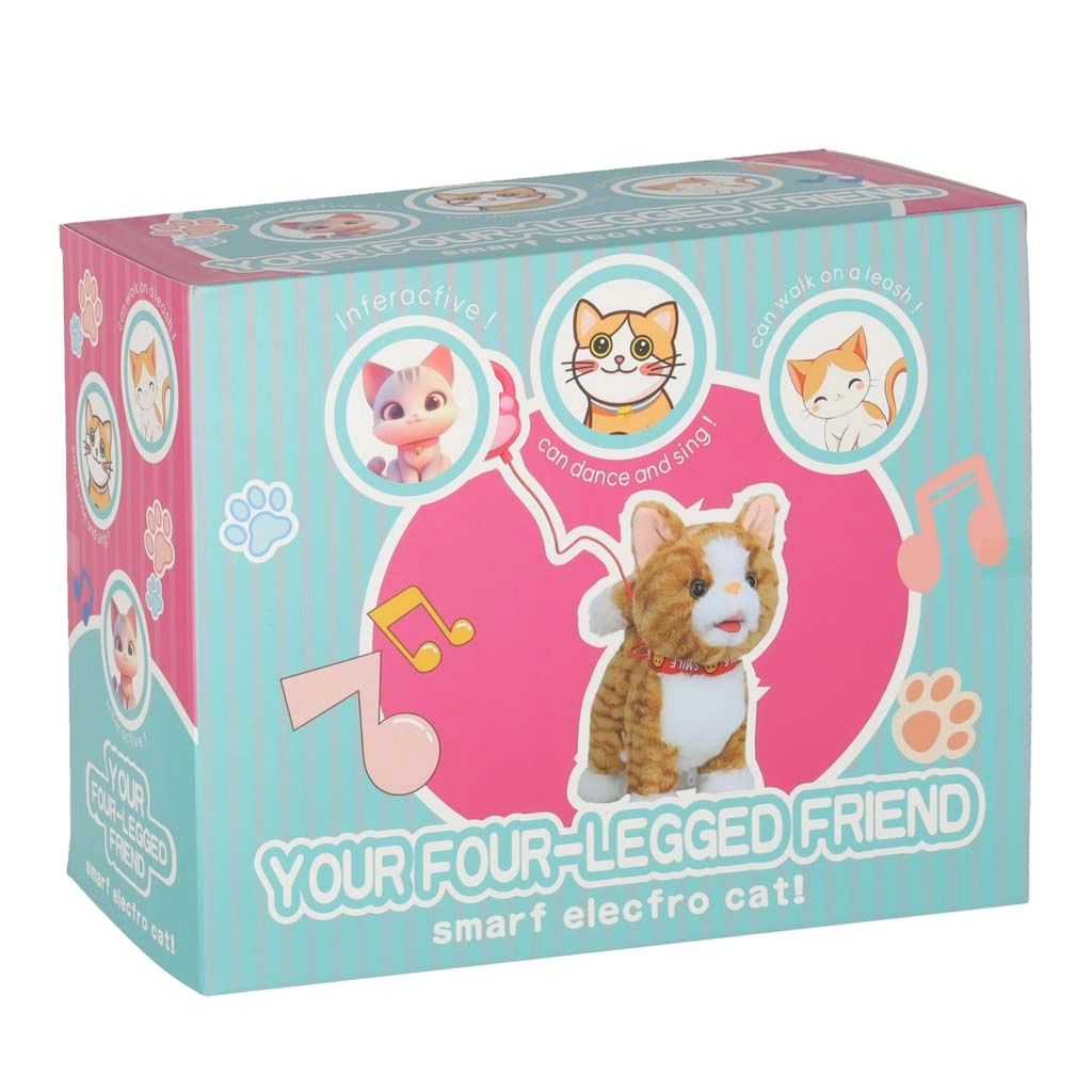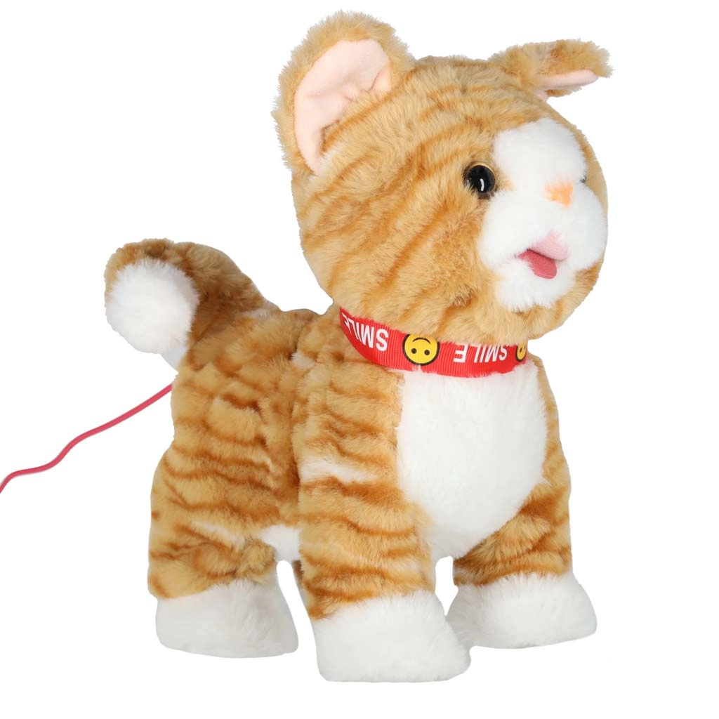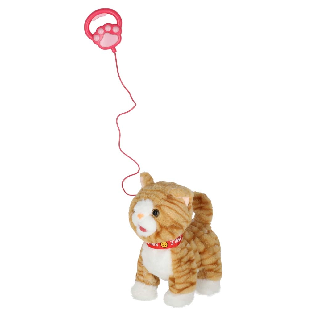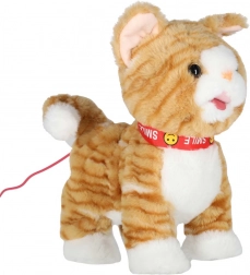 Urocza interaktywna pluszowa kotka na smyczy ucieszy każde dziecko od 3 lat. Po naciśnięciu pilota idzie do przodu, miauczy, macha ogonem oraz porusza głową i języczkiem. Miękkie pluszowe wykonanie zachęca do przytulania i zabawy w opiekę nad domowym pupilem.