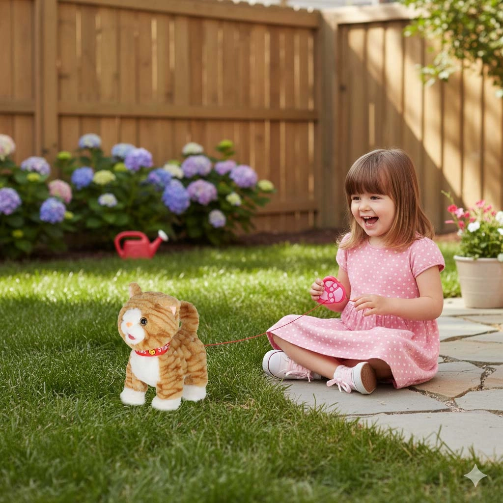 Szukasz przytulnej zabawki, która jednocześnie wspiera wyobraźnię i aktywną zabawę? Ta interaktywna kotka ma miękkie, przyjemne w dotyku futerko, kolorową obrożę i praktyczny ręczny pilot w kształcie łapki. Po naciśnięciu przycisku kotka rusza do przodu, a jej chód towarzyszą dźwięki i melodie.